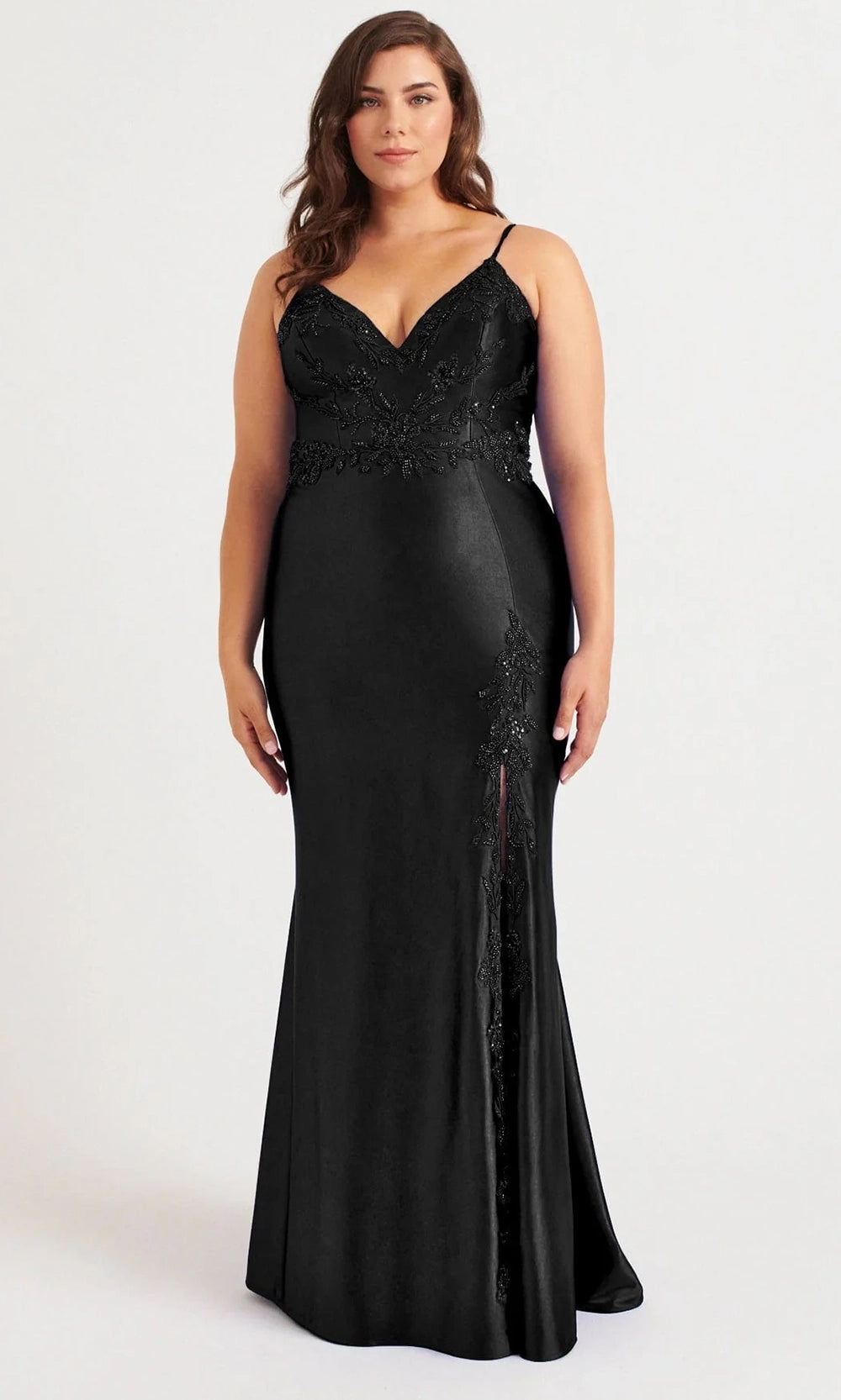 Delicate artistry and sleek design meet in this Faviana 9562 sleeveless dress that elevates evening style. The deep V-neckline framed by slim straps enhance the shoulders, leading into a bodice adorned with sparkly beaded appliques. The fitted form continues into a smooth sheath skirt that opens into a high slit, allowing graceful motion with each step. Its silhouette defines elegance without excess, creating an impression that feels both sophisticated and modern. Faviana 9562 presents timeless beauty designed to flatter and enchant at any special occasion. Models are wearing Black, Royal, Dark Hunter Green, and Raspberry colors.