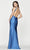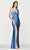 Sleekly sculpted from a stretch charmeuse fabric, this dress reveals a one shoulder neckline and sweetheart shaped bust with double strap detail on the back. This dress is styled with a ruched lower back leading to the full length sheath skirt is accented with a side slit to perfectly elongate your sexy leg. Skirt length is 48 inches. Model is wearing Coastal Blue color.