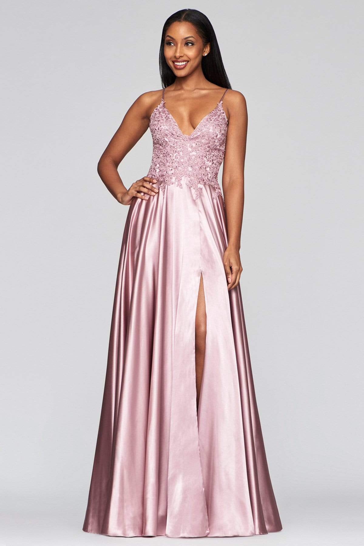 Faviana - S10400 Beaded Lace V Neck Flowy Satin Gown