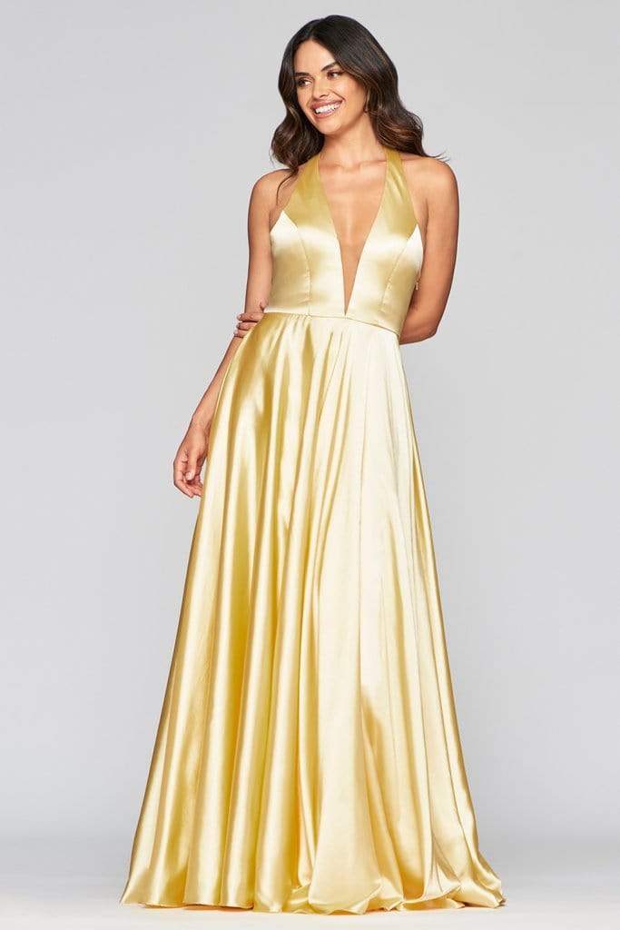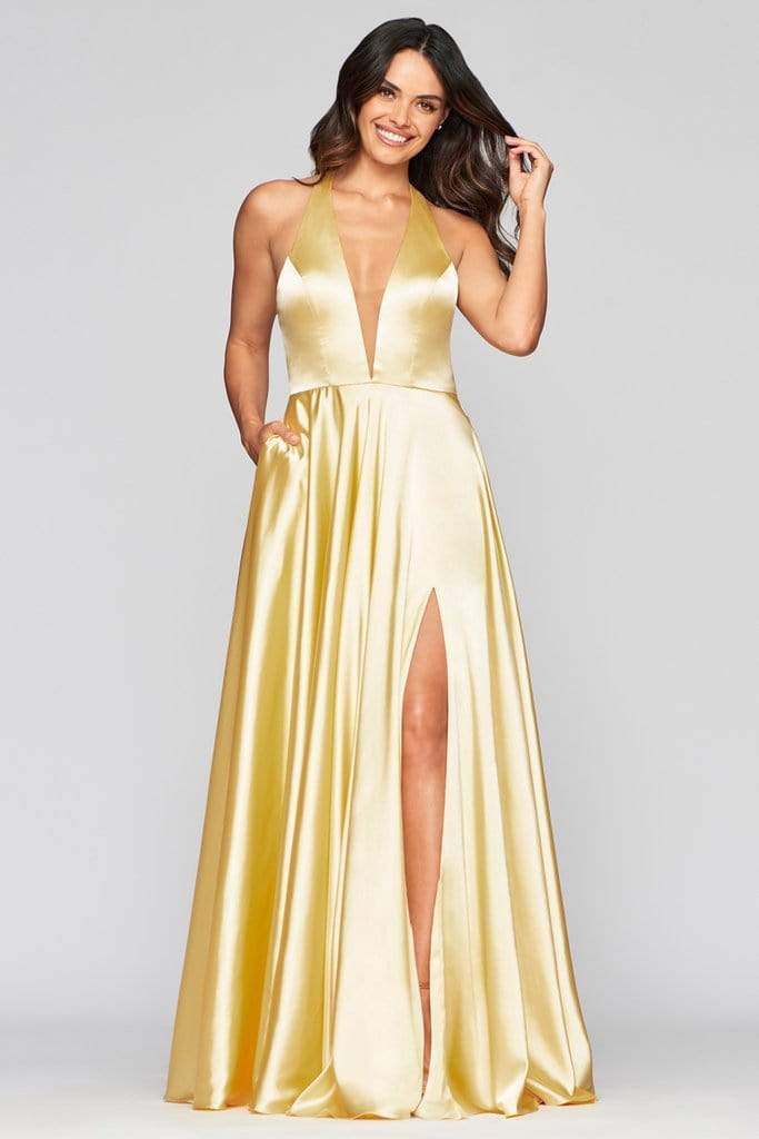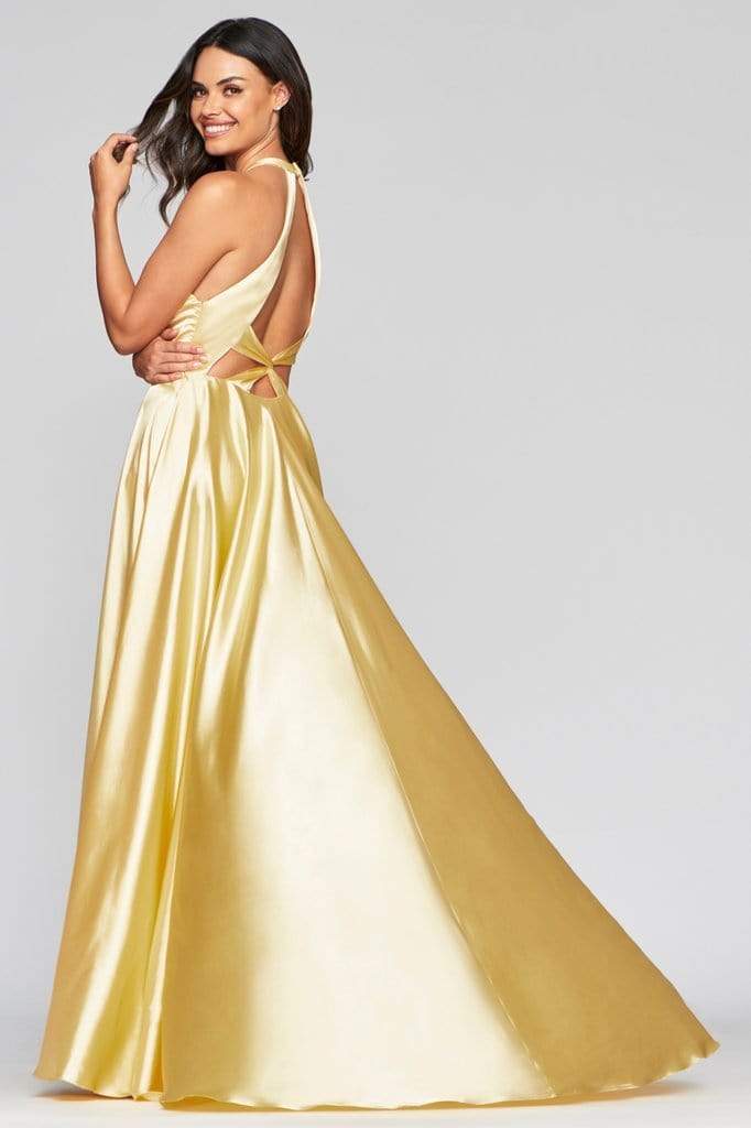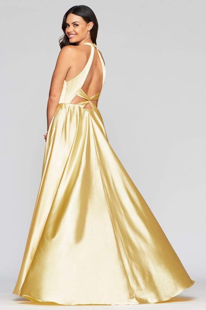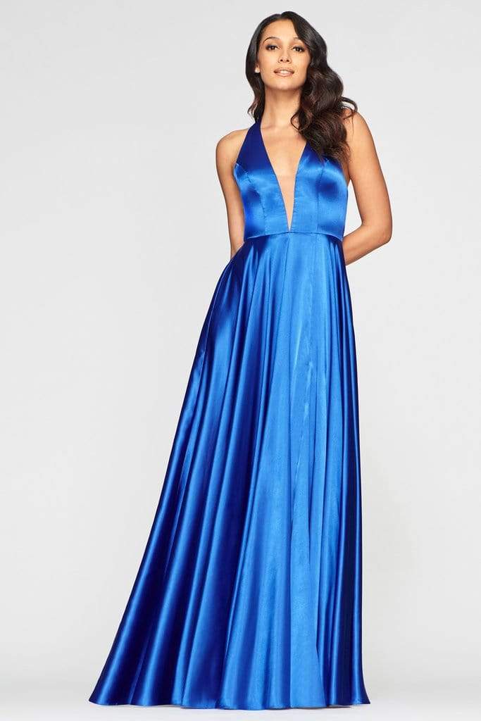 Embrace a classic sense of style in this engaging evening gown by Faviana S10403. This charmeuse gown glams a sleeveless, deep V-neckline with sheer inset at mid-bust. The fitted bodice is styled with cutouts. The skirt forms a full length A-line silhouette and finishes in a sweep train. Achieve new heights of fashion in this exquisite evening gown by Faviana. Find more designer formal dresses.