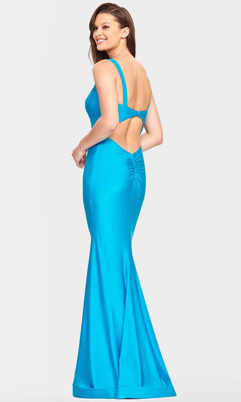 Look your absolute best and create a night that you will never forget in this Faviana S10841 creation. Get your DIVA on with this dress that is tailored in charmeuse fabric and features a sleeveless square neckline with cutout detail at the back. The mermaid skirt cascades beautifully on the floor. This Faviana S10841 creation is the perfect choice for the girl who wants to look attractive without being suggestive. The model is wearing a Sea Blue color.