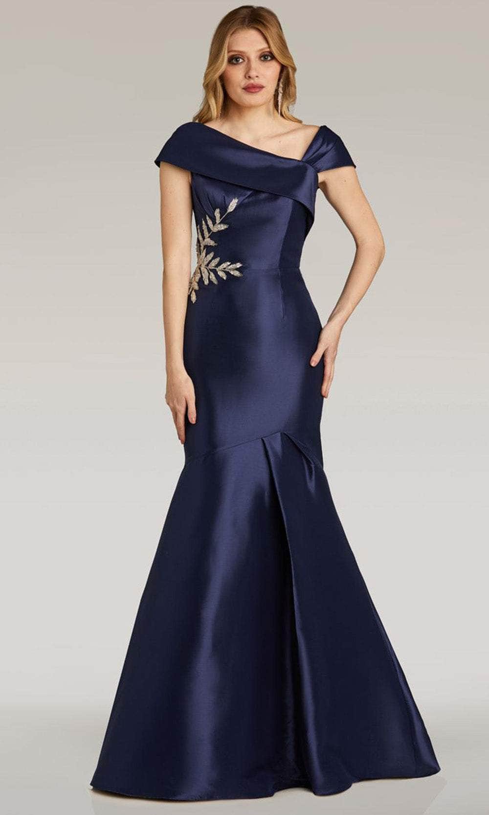 You will dazzle and captivate the crowd in this Feriani Couture 18268 masterpiece. This ensemble is crafted from Mikado fabric, and has beaded embroidery on the side waist that adds a beautiful focal point. The fold-over details on the asymmetric neckline, cap sleeves and midrise v-shaped are featured. It also includes a convenient back zipper to ensure a secure and comfortable fit. The mermaid skirt highlights your figure and finishes with a dramatic sweeping train. Dive into a divine event in this luxe Feriani Couture 18268 creation. Models are wearing Silver, and Navy colors.