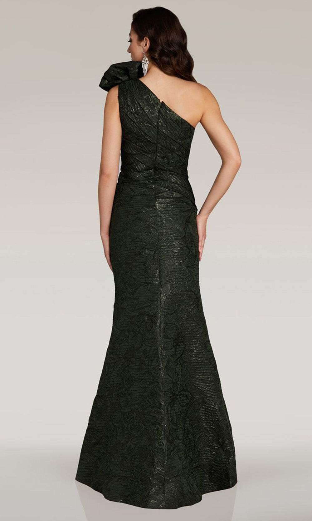Be the envy of everyone in this Feriani Couture 18356 masterpiece. This sleeveless style highlights your inherent beauty with its ruched bodice and all-over floral print designs. It has a stunning asymmetric neckline, and a single wide strap with a stylish bow-like accent. The mid-open back adds a hint of allure, complemented by zipper closure for easy wearing. As a finishing touch, the skirt slims at the hips and flares out at the knees to make a beautiful mermaid silhouette. Feel like a true queen in this Feriani Couture 18356 creation. Models are wearing Olive, and Navy colors.
