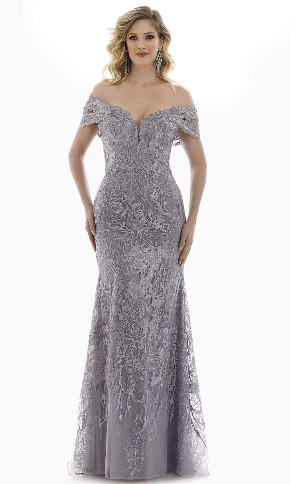 Flatter your figure with this eccentric design by Feriani Couture 20130. This embroidered gown charms a plunging off shoulder neckline with a fitted bodice. The skirt tapers at the thighs and flares at the bottom. This Feriani Couture dress is perfect for a standout style and flawless fit. Model is wearing Silver color.
