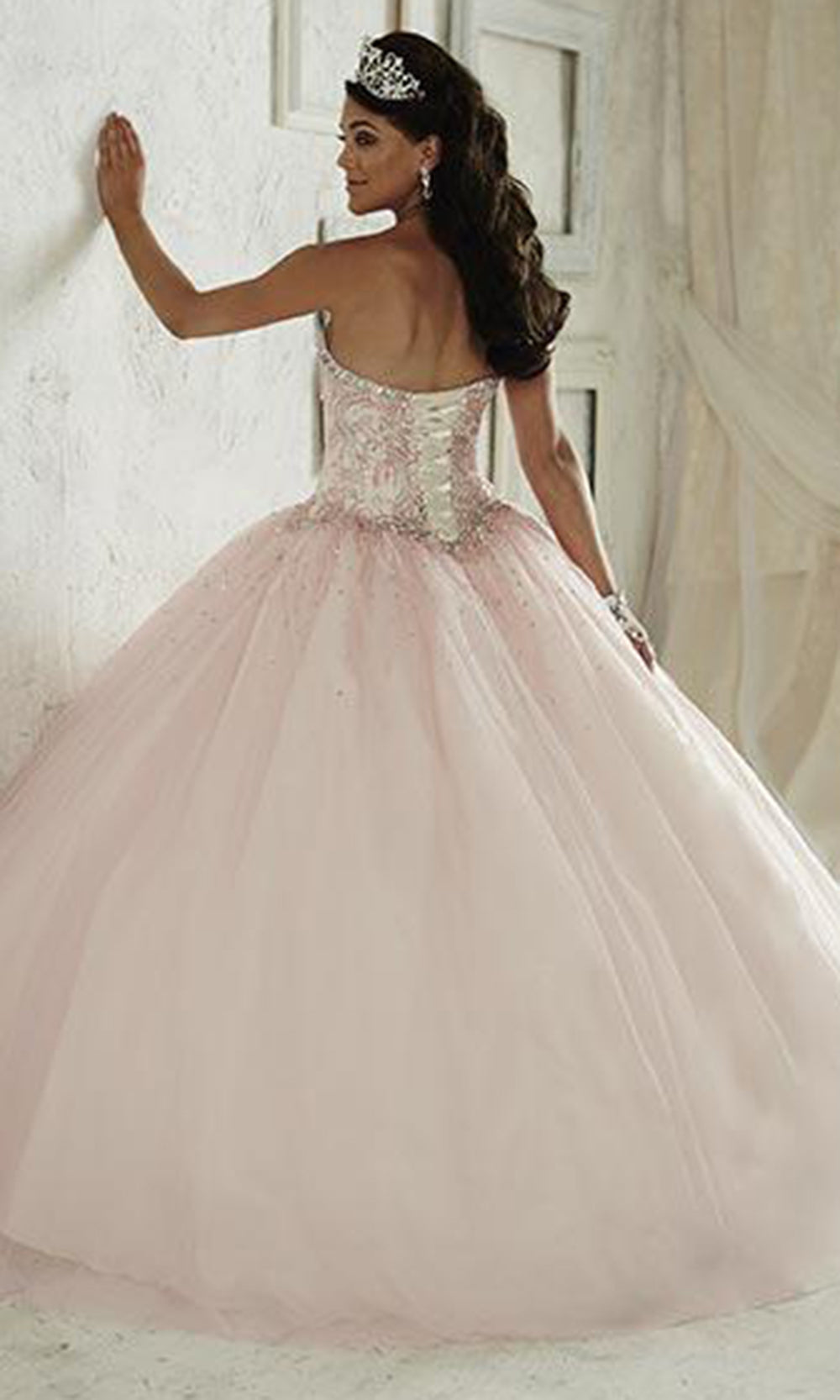 | Details: | Strapless, Sequins, AB Stones, Fitted bodice, Bead work, Ballgown skirt, Lace up back |