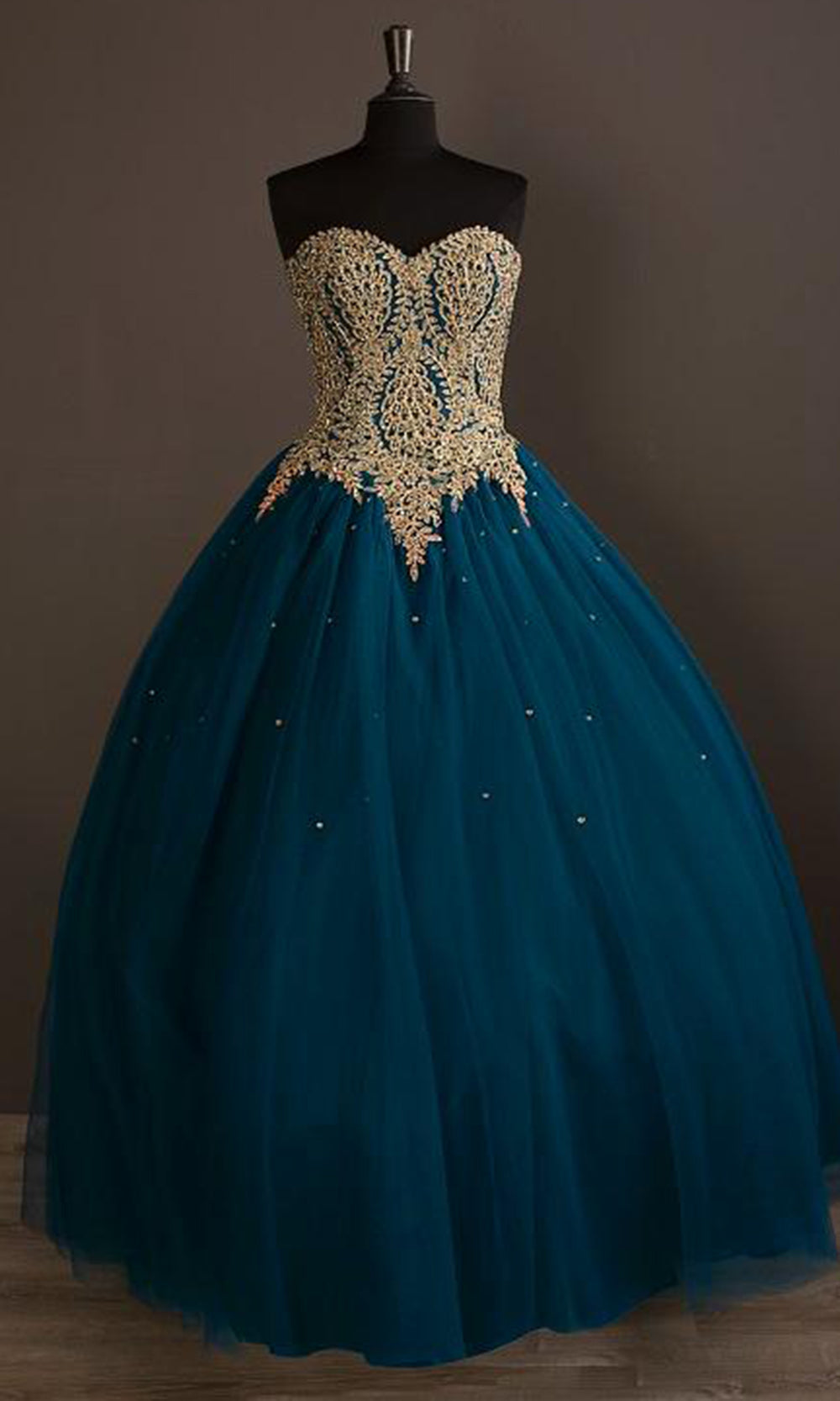 | Details: | Strapless, Embroidered lace, AB rhinestones, Pleated tulle, Ballgown skirt, Sequins |