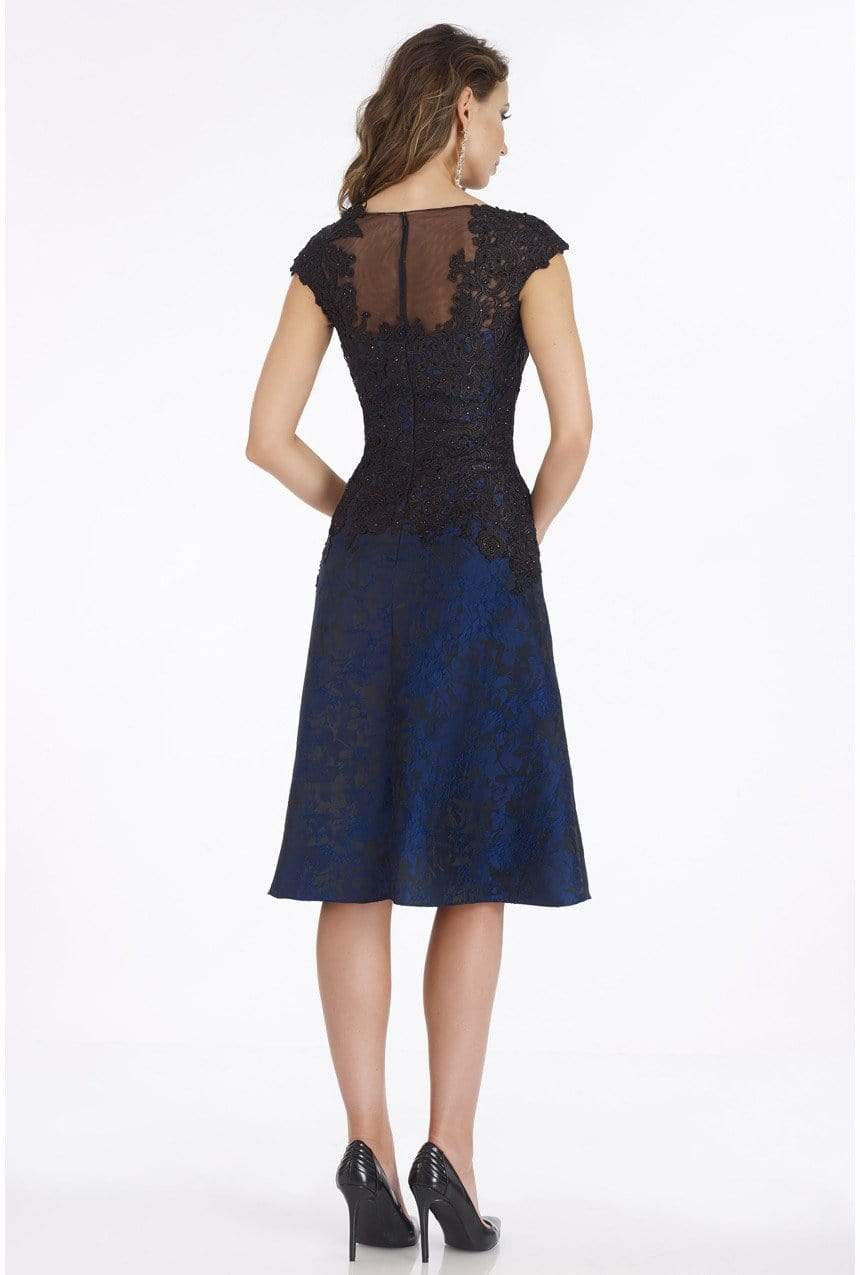 Show off your classy style when you wear this dress by Gia Franco 12013. This two tone embroidered dress features a bateau neckline with cap sleeves. The fitted bodice flourishes an A-line skirt that runs at knee length hem. This Gia Franco dress definitely parades the elegant and classy style.