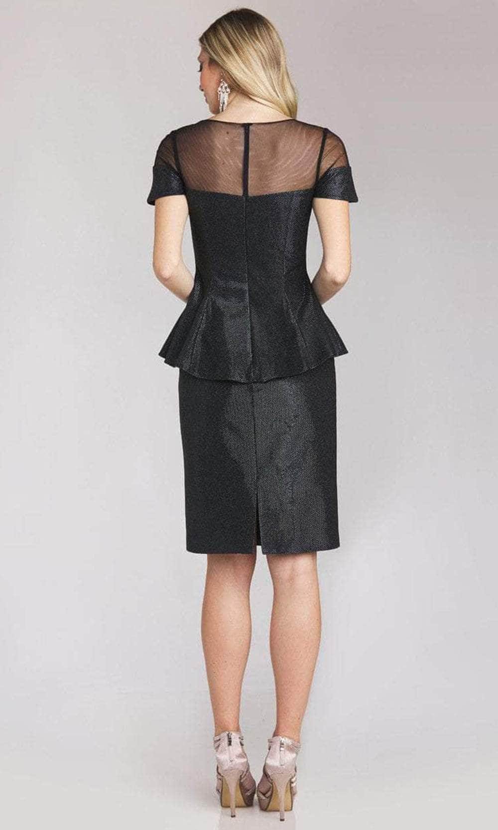 Be an integral part of your sumptuous party in this exceptionally designed Gia Franco 12156 creation. Defined with sculpting seams flaunting the female form, this stunner charms with an illusion jewel neckline with sheer cap sleeves. Defined with a semi-sweetheart lining and an illusion back, a high low peplum accent wraps the waist. The sheath skirt skims into a knee length hemline. A back slit is provided for ease of movement. Look like an exceptional vision as you make it to the top in this Gia Franco masterpiece. Model is wearing the Black color.
