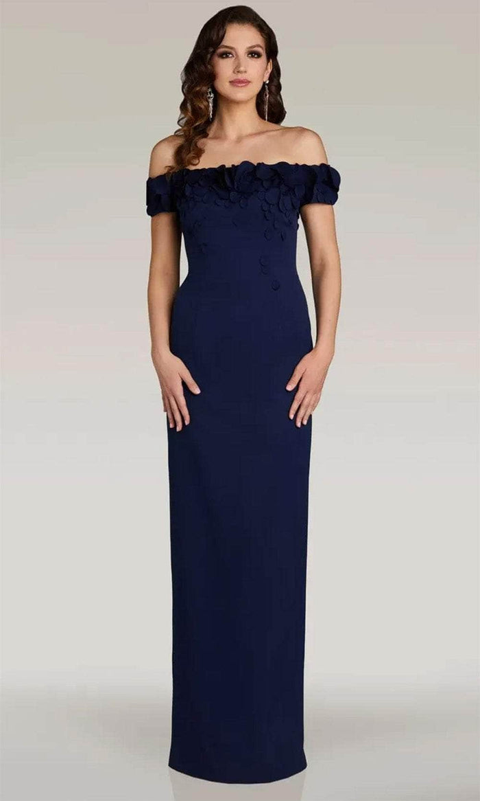 Deck yourself out in a captivating manner with the Gia Franco 12366 design, a flawless embodiment of elegance and sophistication. Expertly crafted seams gently trace the enchanting silhouette of this garment. The off-shoulder neckline, adorned with intricate floral detailing, adds a touch of refinement to the impeccably tailored bodice. With short sleeves and a concealed zipper closure at the midrise back, this stunning attire guarantees a tailored and flattering fit. The sheath skirt descends gracefully, featuring a back slit and ending in a floor-length hem. Make a striking entrance on the red carpet with the Gia Franco 12366 gown, a timeless masterpiece exuding sophistication. Model is wearing the Navy color.