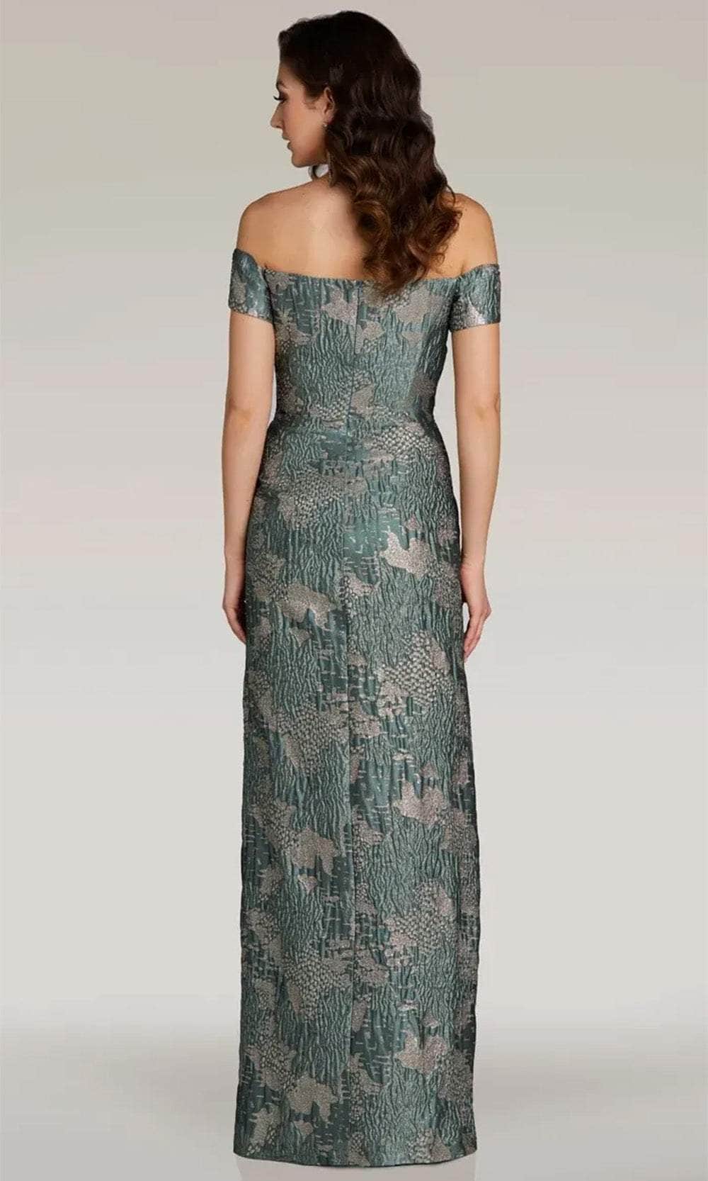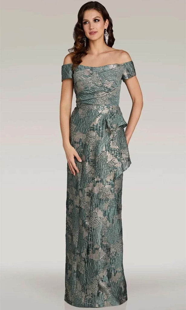 Strive to be the belle of the ball in this Gia Franco 12371 creation, effortlessly capturing femininity. Elaborate seams intricately define its captivating silhouette. Crafted from jacquard fabric, the gown showcases an off-shoulder neckline, emphasizing a flawlessly pleated bodice. Decorated with short sleeves, this gown is accented with a midrise back and a concealed zipper closure, ensuring a tailored and flattering look. The sheath skirt flows gracefully into a floor-length hem. Step confidently onto the red carpet in the Gia Franco 12371 masterpiece, an eternal symbol of sophistication. Models are wearing the Navy and Sage colors.