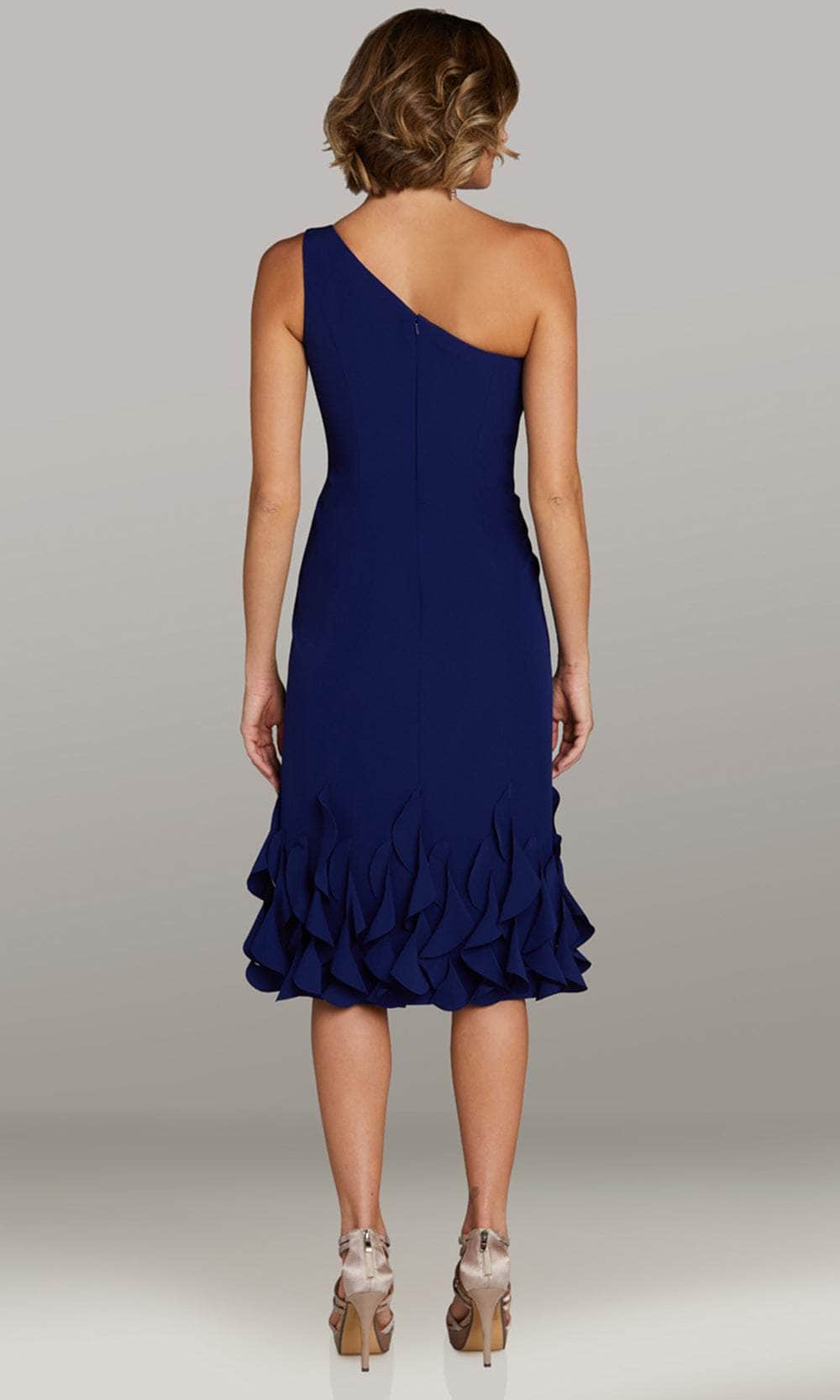 Make a stylish impression with the Gia Franco 12425, a modern masterpiece of elegance and flair. The asymmetric neckline and wide one-shoulder strap create a striking visual balance, while the sleeveless bodice enhances a graceful silhouette. Its sleek sheath skirt with a ruffled hemline adds a touch of movement and sophistication. Cut at a flattering tea length, it embodies contemporary confidence. Step into any occasion exuding charm and confidence with the chic Gia Franco 12425.