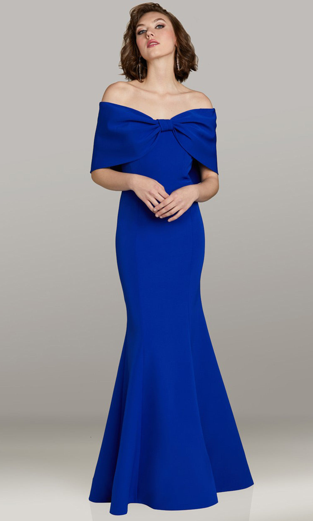 Refined artistry meets structured grace in the captivating design of Gia Franco 12470. Every detail speaks to its elegant craftsmanship, from the sculpted fit that flatters natural curves to the striking bow that defines the off-shoulder neckline. The smooth transition into a gentle mermaid flare creates effortless movement and a sense of poised beauty. Perfect for an evening celebration, Gia Franco 12470 offers sophistication that stands out with timeless confidence and understated allure. Models are wearing Emerald, Royal, and Fuschia colors.