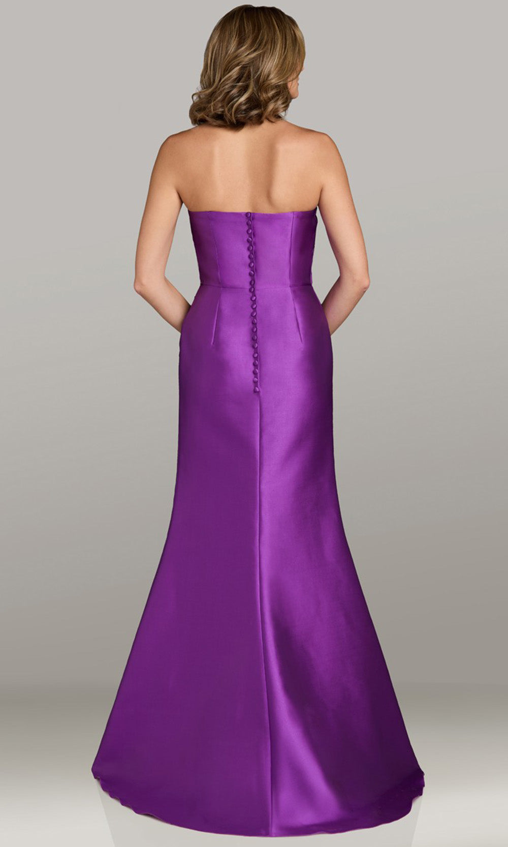 | Details: | Strapless, Ruched Bodice, Floral Embroidery, Midrise Back with Buttons, Floor-Length Hem |