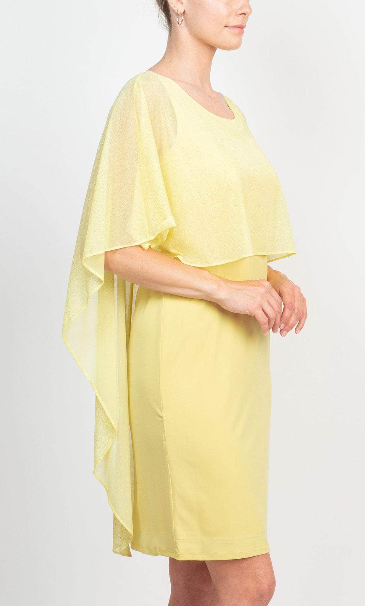Let everyone turn heads as you glide with this fabulous creation from Glamour GGM180 that has a striking look. This stellar piece showcases a scoop neckline and a fitted bodice beautifully accented with a chiffon cape that is meant to capture attention. The skirt in a short-length hemline shows off some skin and reveals a sheath silhouette. Show off your classy and elegant style when you wear this gorgeous Glamour GGM180 masterpiece. Model is wearing Butter color.