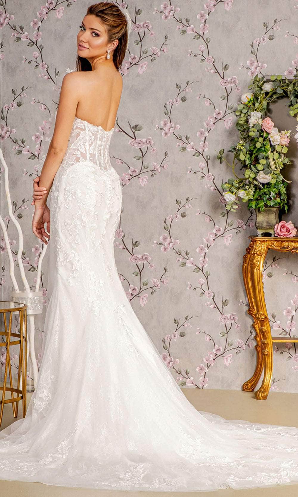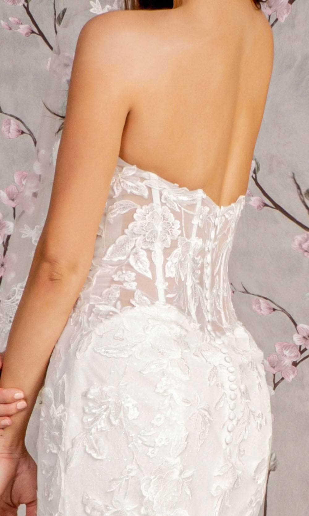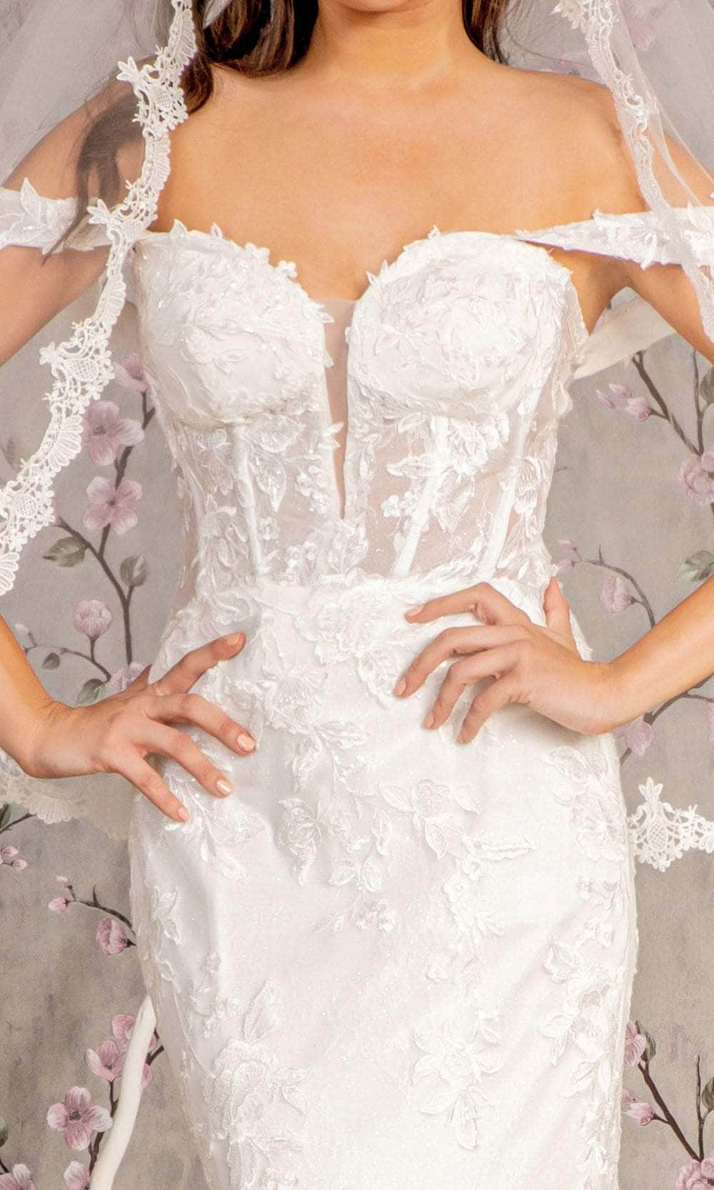 Simplicity and elegance as defined by GLS by Gloria GL3488, a glittering off-shoulder sheer bodice mesh mermaid bridal gown. This enchanting dress combines modern glamour with timeless sophistication, featuring an off-shoulder design that adds allure to the sheer bodice adorned with sparkling glitters. The mermaid silhouette gracefully hugs the curves, creating a captivating and elegant look. GLS by Gloria GL3488 is the perfect choice for brides seeking a touch of sparkle and a radiant presence on their special day. Model is wearing White color.