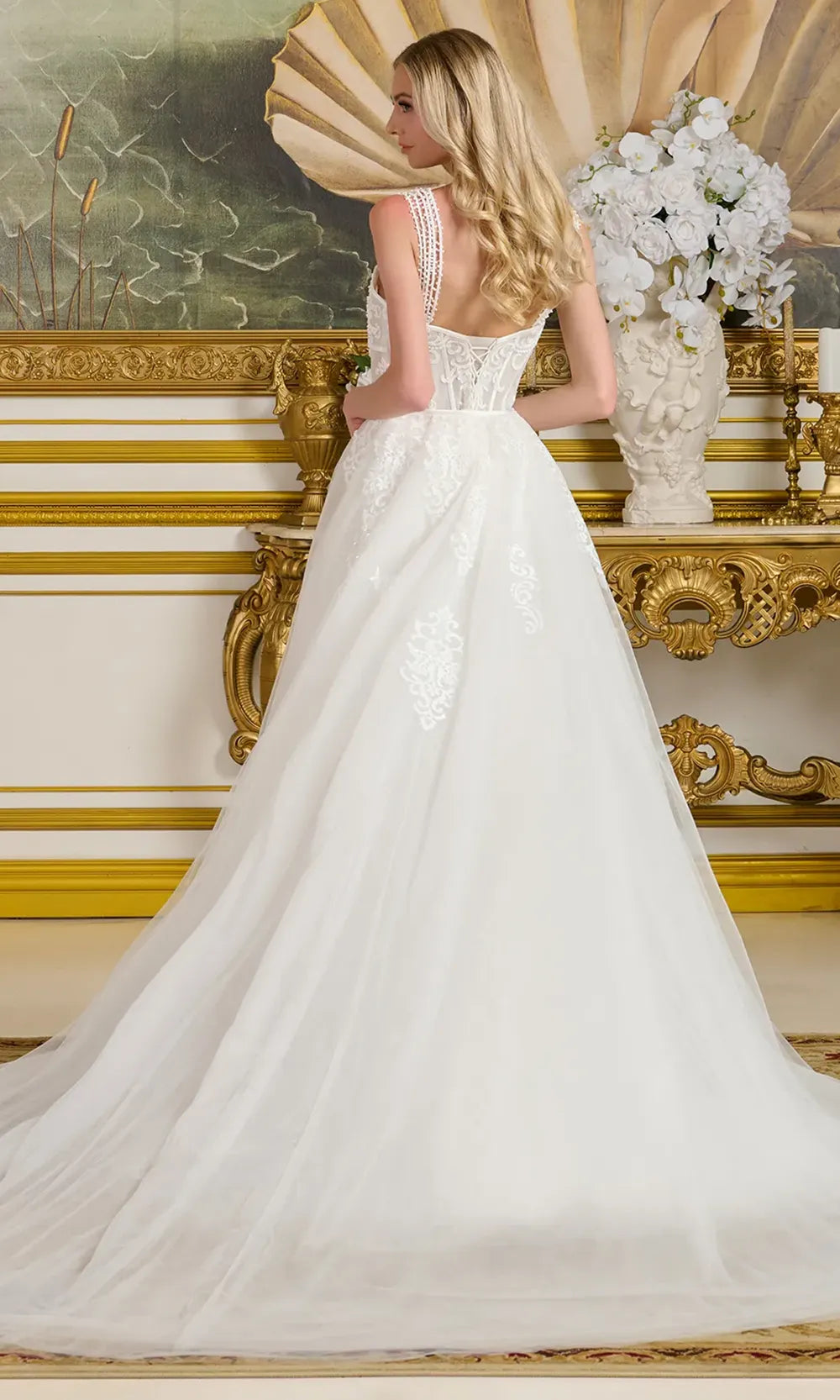 A radiant gown that captures both glamour and versatility, this GLS by Gloria Bridal GL3654 design is a celebration of detail and movement. Multiple beaded spaghetti straps highlight the shoulders and frame a sweetheart neckline that flatters the figure. The bodice sparkles with intricate beadwork, embroidery, and sequins, creating texture that captivates the eye. Sleek silk binding outlines the contours of the silhouette, emphasizing refinement and balance. The detachable A-line overskirt train adds an element of surprise, allowing brides to transform their look seamlessly. With elegance woven into every feature, GLS by Gloria Bridal GL3654 delivers unforgettable bridal beauty. Model is wearing Off.Wht color.