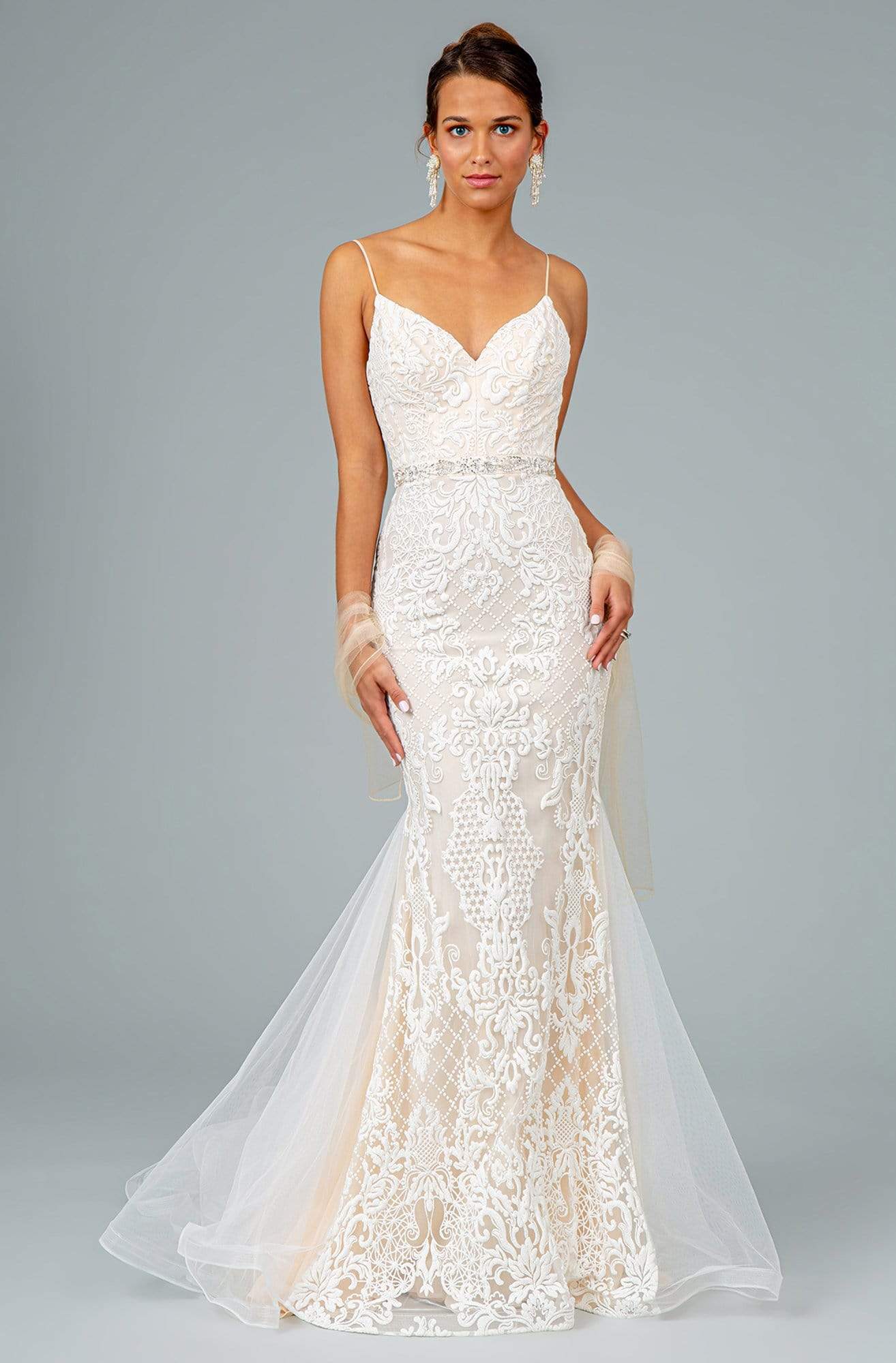 Look lovely in this timeless dress by GLS by Gloria GL2934. This embroidered gown glams in a sleeveless, V-neckline with spaghetti straps. The fitted bodice has a mid-open back and a zipper closure. The skirt is tailored in a mermaid silhouette and finishes in a sweep train. This posh party gown by GLS by Gloria puts you in the spotlight.