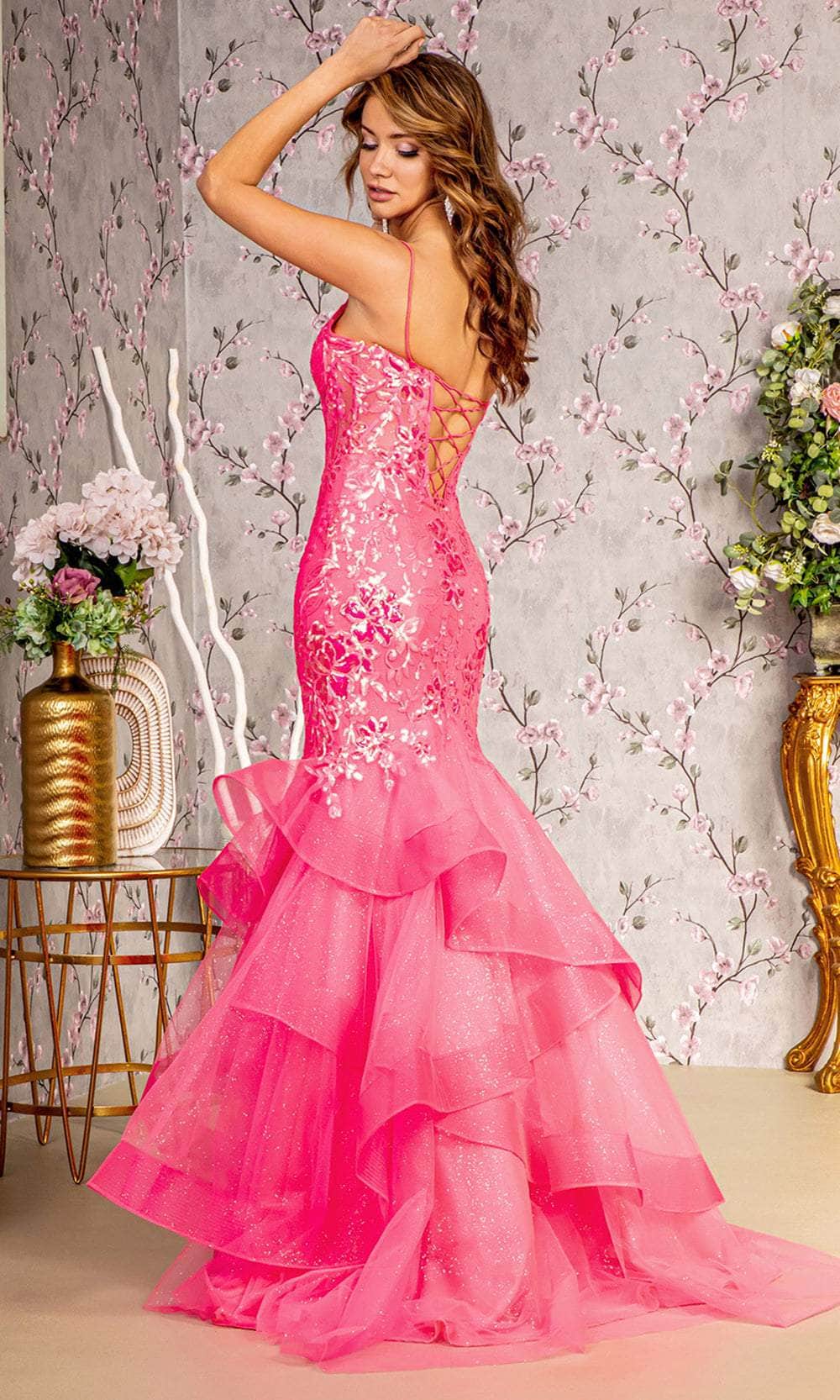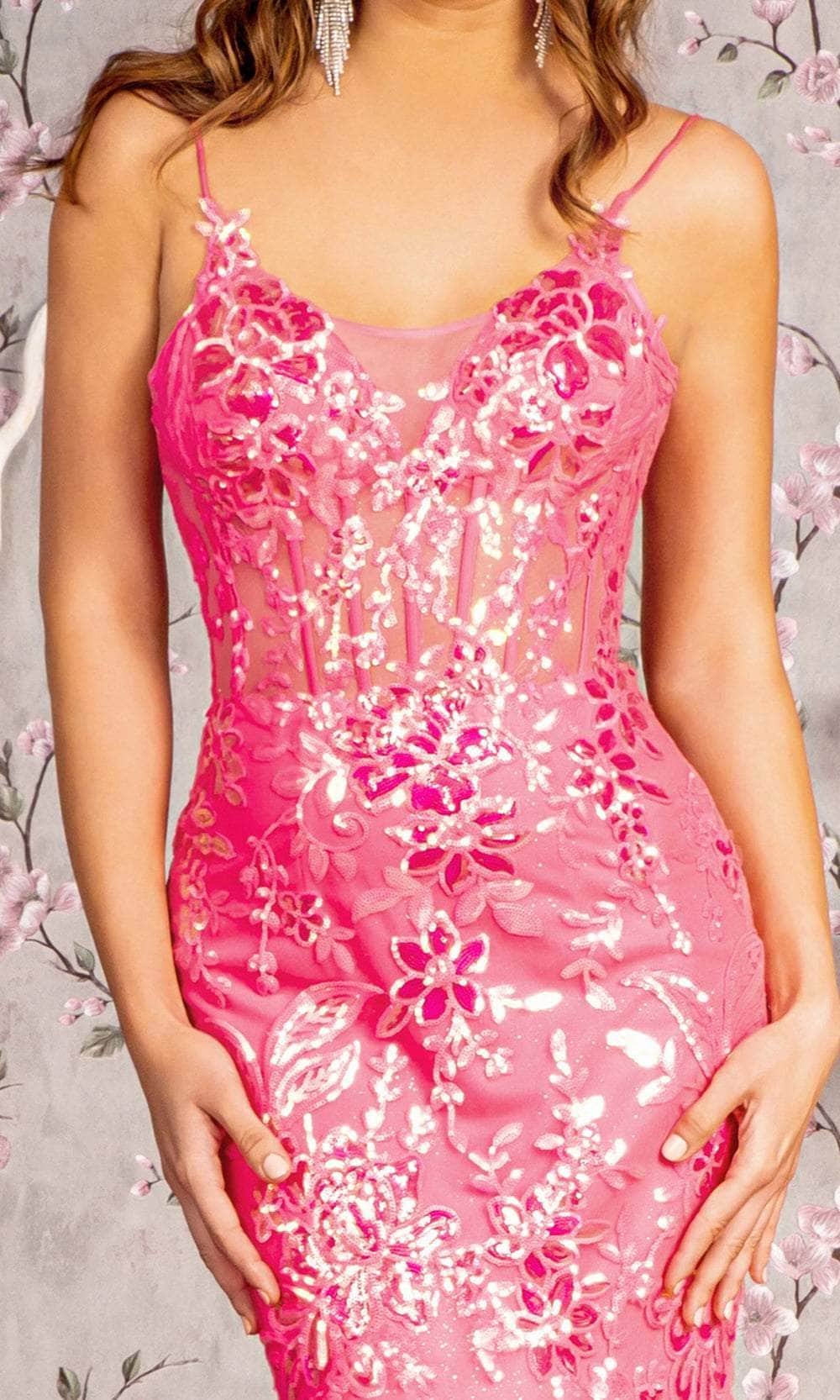 Step into the limelight with this stunning GLS by Gloria GL3205 evening gown. The dress highlights an enticing sweetheart neckline on a fitted and sleeveless bodice. The top features an illusion corset style with spaghetti straps for additional support, and the mid-open back is elegantly fastened with lace for a refined touch. This dress is exquisitely adorned with floral-patterned sequin embellishments, ensuring you captivate your audience. The floor-length skirt unveils a trumpet silhouette, enhanced by majestic ruffle designs for added appeal. Own the night in this mesmerizing creation, GLS by Gloria GL3205. Model is wearing Hot Pink color.