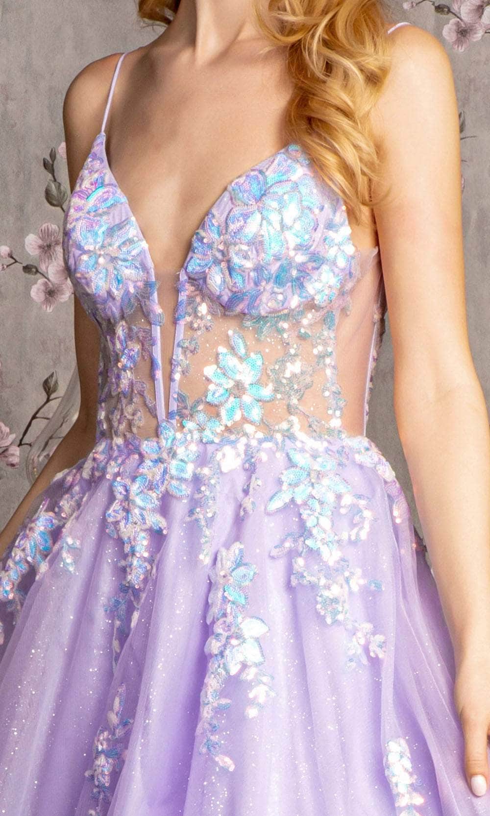Illuminate the night in GLS by Gloria GL3226, a dazzling sequin and glitter-adorned gown. The sleeveless sheer bodice, adorned with sparkling sequins, showcases a flattering sweetheart neckline. The V-back adds an extra touch of allure, while the center zipper closure ensures a secure fit. The floor-length A-line skirt, crafted from ethereal mesh, gracefully flows in a captivating silhouette. This GLS by Gloria GL3226 captures the essence of glamour and sophistication, making it a radiant choice for any special occasion. Model is wearing Lilac color.