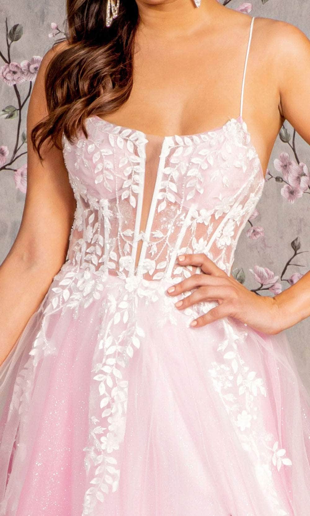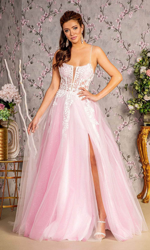 Get the appearance and confidence you deserve with GLS by Gloria GL3249, a mesmerizing embroidery sequin sheer bodice mesh A-line gown. The scoop neckline exudes sophistication, complemented by delicate thin straps leading to an open back with a lace-up tie and central zipper closure for a secure fit. The floor-length skirt, adorned with exquisite detailing and featuring a slit, flows gracefully and concludes with a dramatic train. This GLS by Gloria GL3249 seamlessly marries modern allure with timeless charm, making it a captivating choice for any special occasion. Model is wearing Light Pink color.