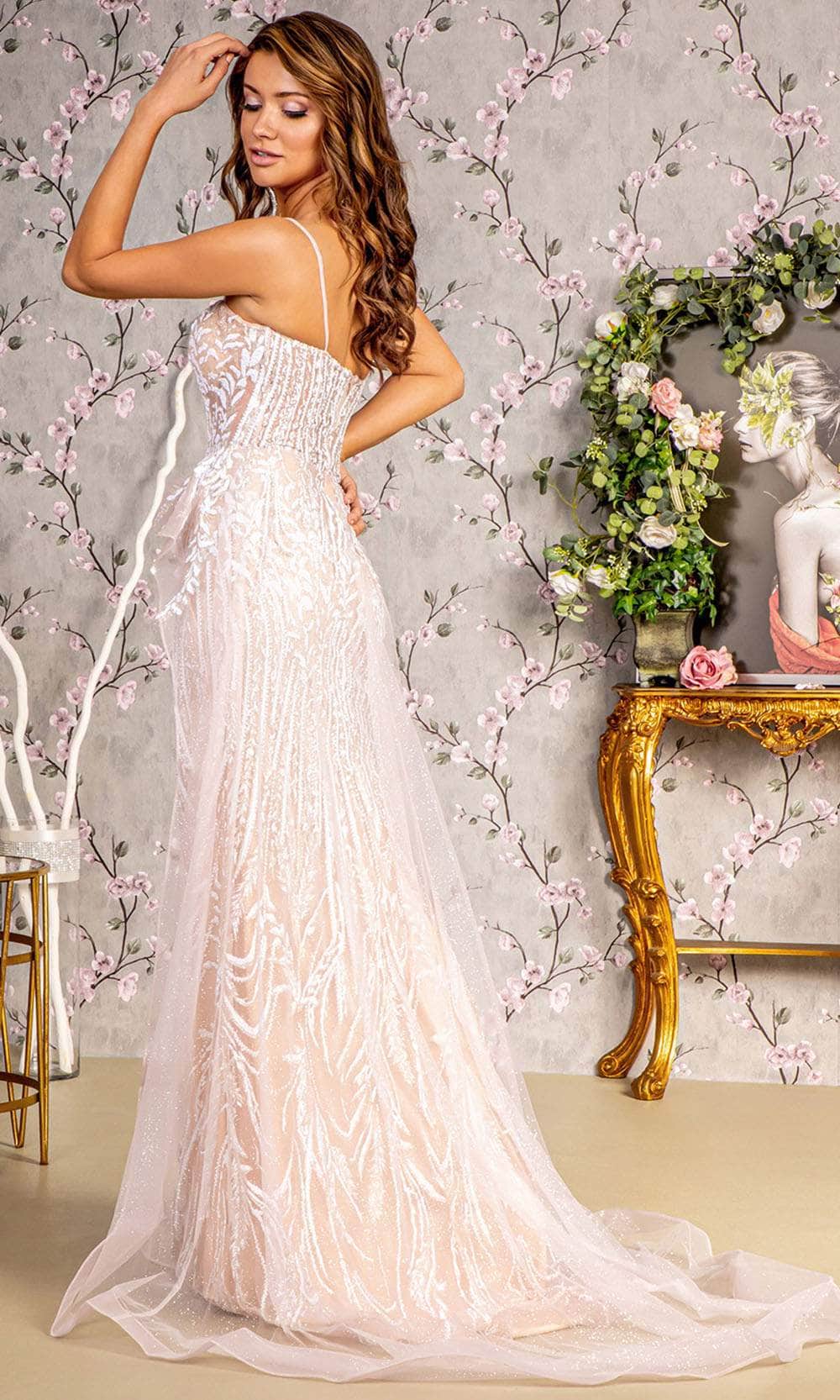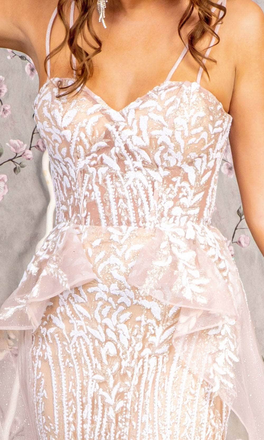 Elevate your style with GLS by Gloria GL3259, a mesmerizing mesh mermaid gown adorned with glitter on the sheer bodice. The sleeveless design and sweetheart neckline add a touch of allure, while the back zipper closure ensures a secure fit. This enchanting dress is complemented by a waist drape layer, creating a dynamic and sophisticated silhouette. GLS by Gloria GL3259 seamlessly combines modern glamour with timeless elegance, making it a radiant choice for those seeking a captivating look for any special occasion. Model is wearing Champagne color.