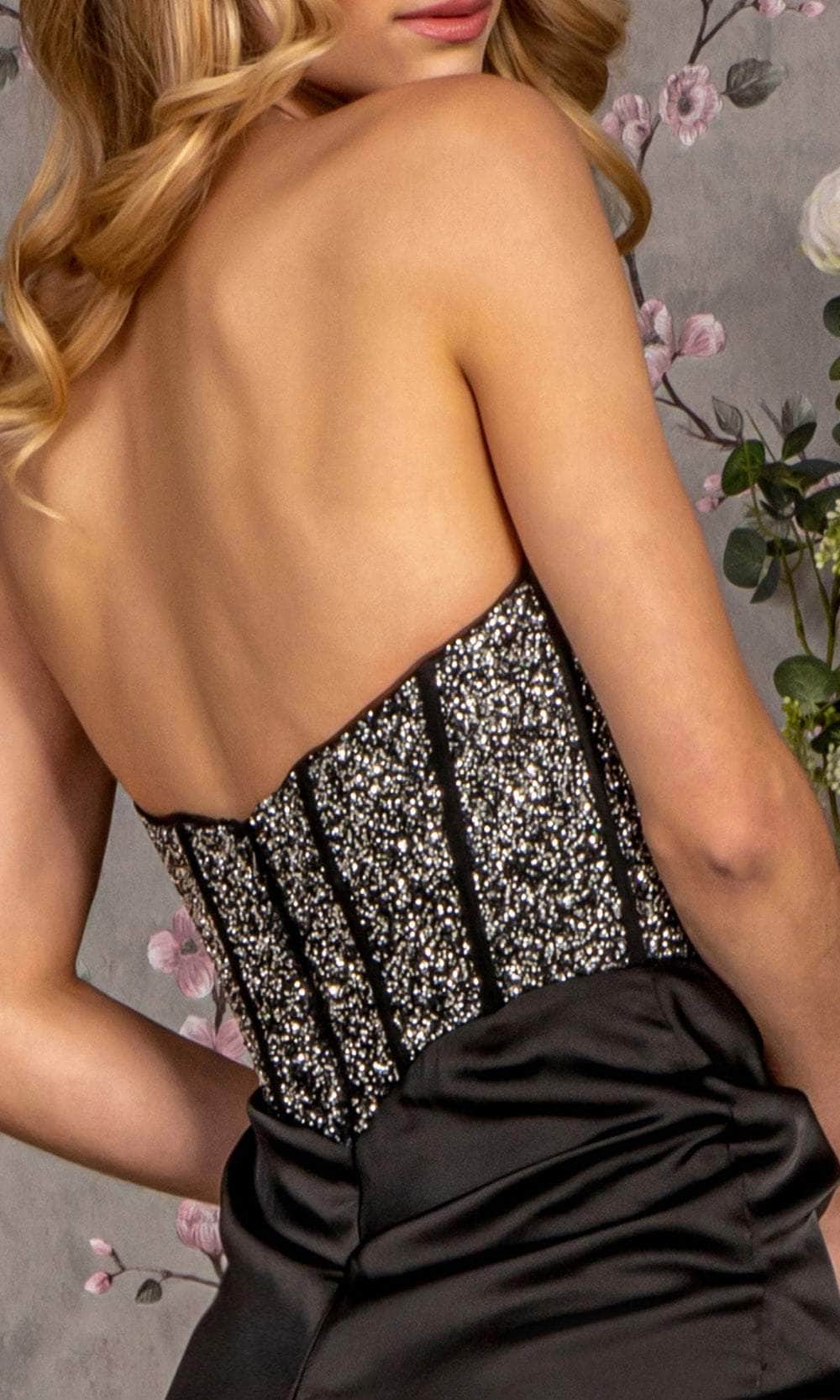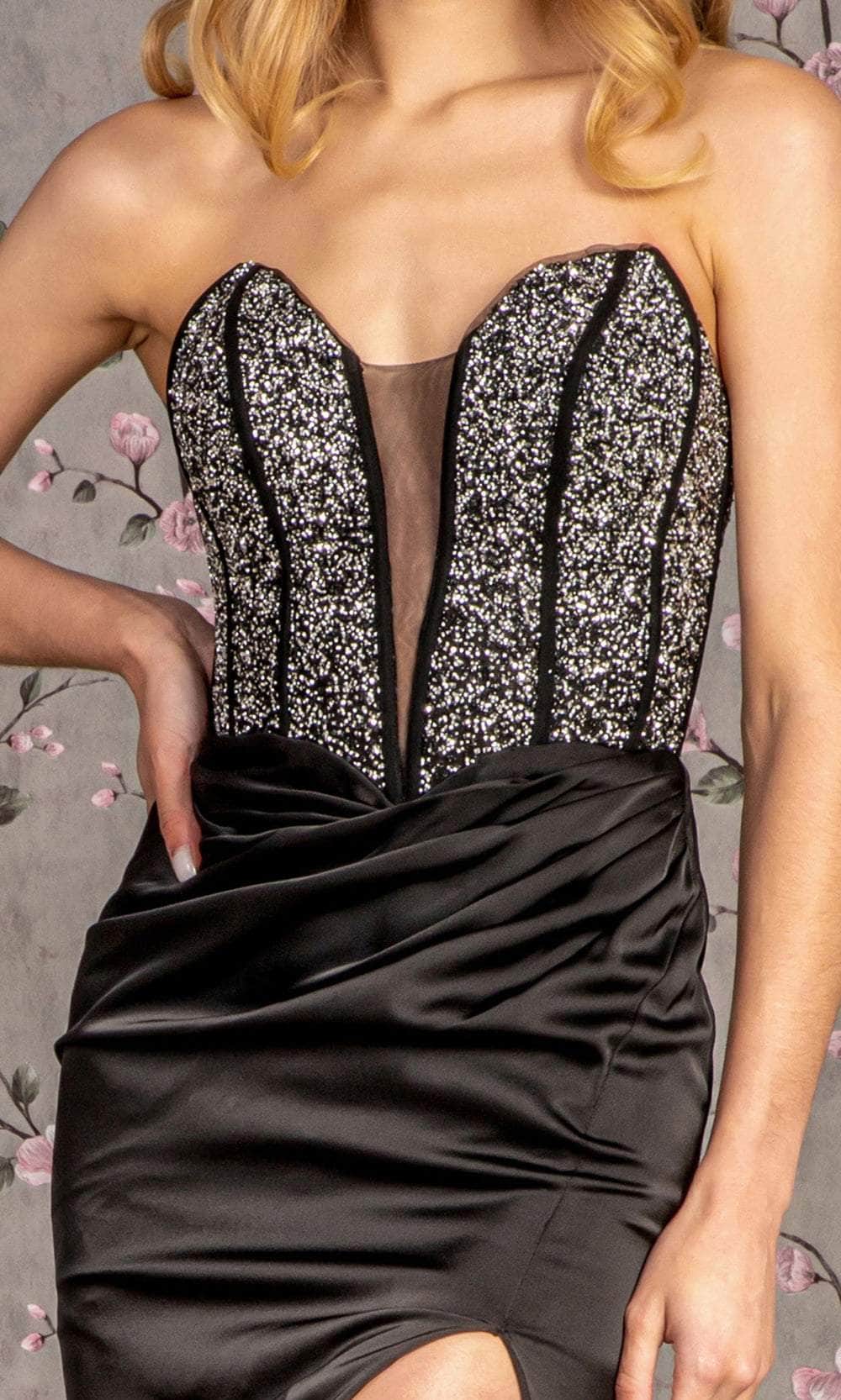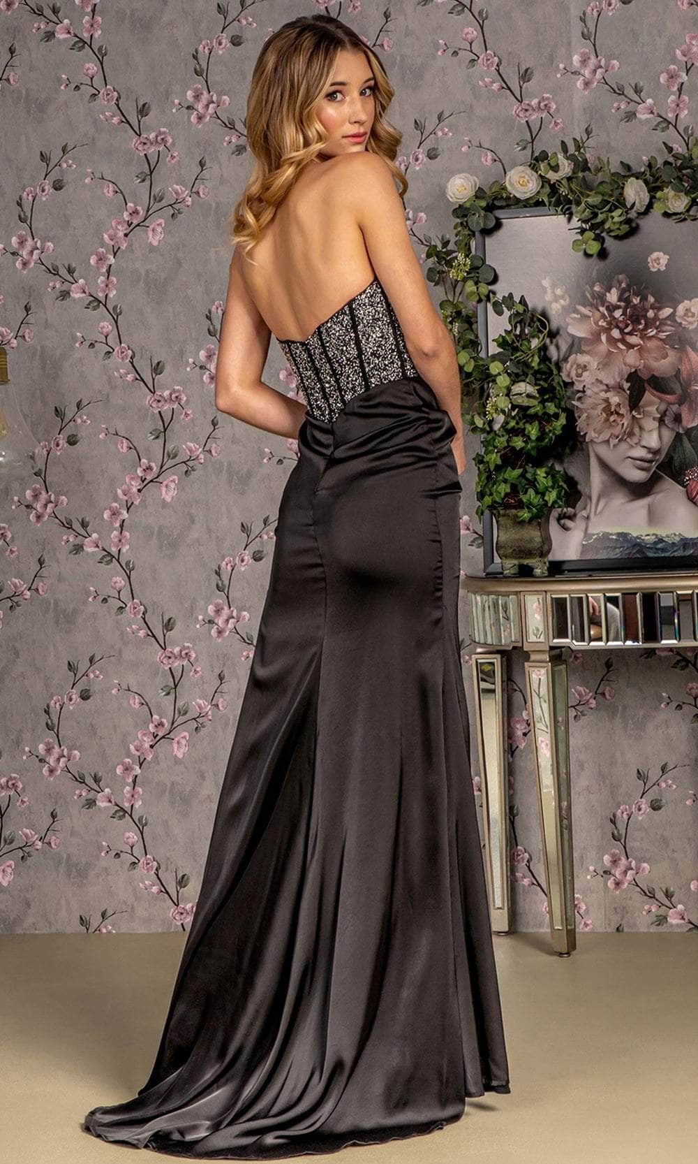 Elevate your allure with the GLS by Gloria GL3280 evening gown, exuding red carpet glamour. This dress showcases a captivating strapless plunging sweetheart neckline on a fitted and sleeveless bodice, enhanced with boning details for a well-defined structure. The mid-open back is gracefully fastened with a zipper for a polished touch. Sparkly beads adorn the top, while the skirt reveals an enticing high slit. The sheath skirt features draping effects along the hips and a sweep train that cascades to the floor length. Step into the spotlight and capture the glamour in this stunning masterpiece by GLS by Gloria GL3280. Models are wearing Black, and Smoky Blue colors.