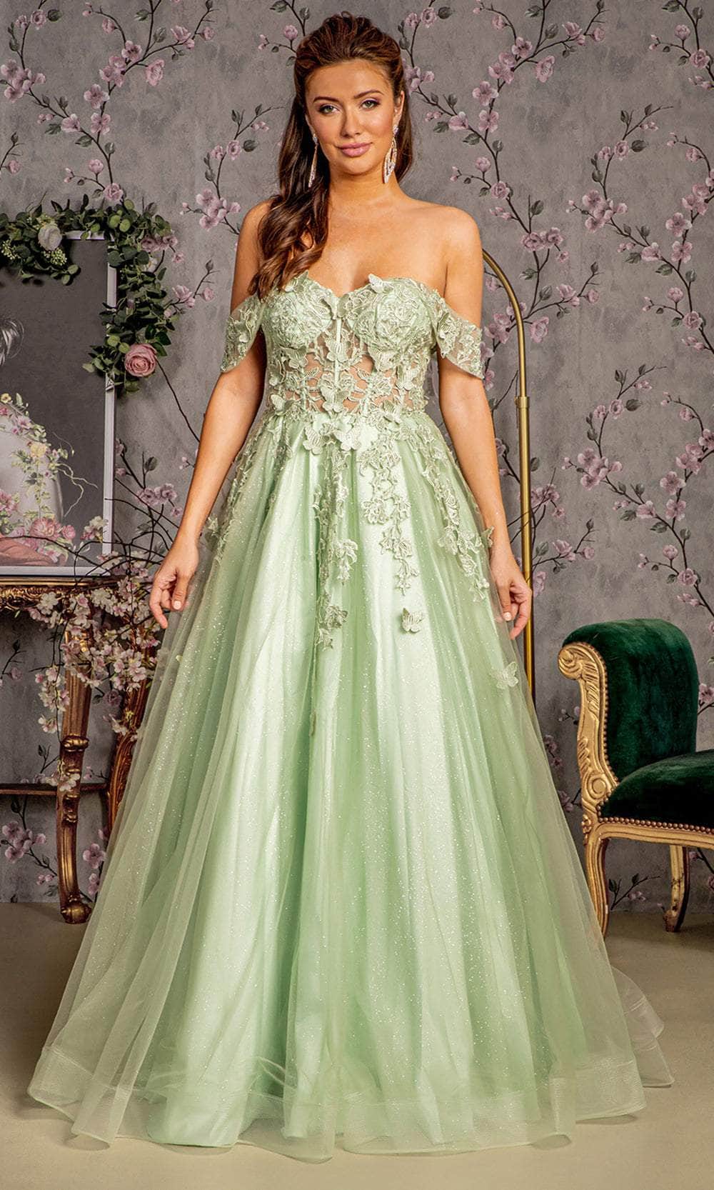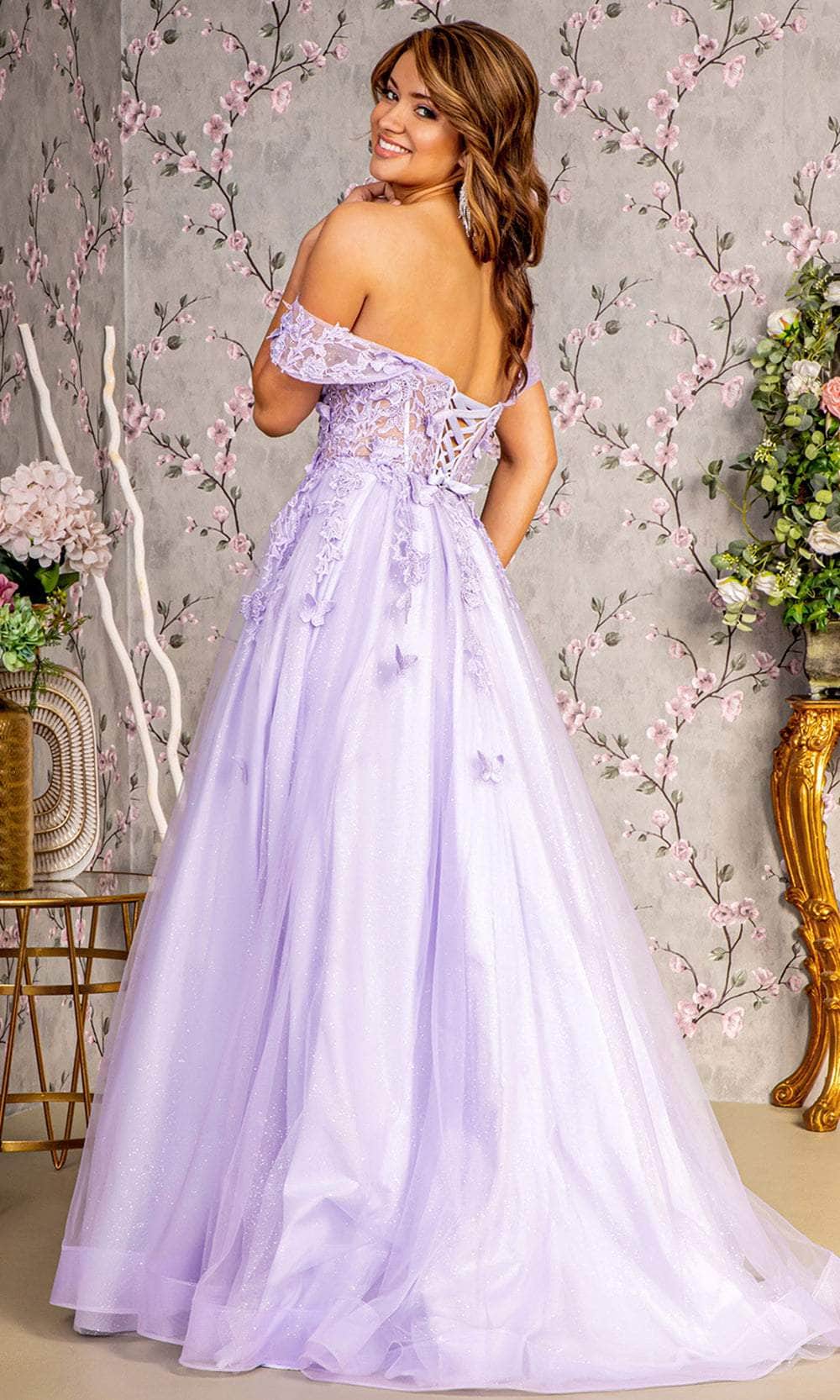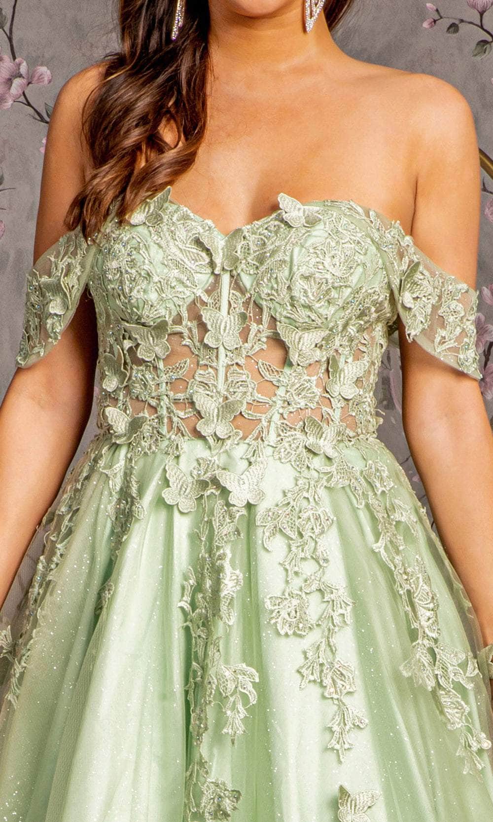 Elevate your aesthetic charm with the opulent GLS by Gloria GL3296 evening gown. This dress features a captivating off-shoulder neckline on an illusion corset bodice. The mid-open back is elegantly secured with lace for a sophisticated finish. Adding to the overall allure, a sweep train gracefully cascades on the floor-length A-line skirt. The gown is wonderfully adorned with butterfly appliques, embroidery, and glitters, ensuring you look fabulous from every angle. Seize the spotlight and make it your moment to stand out wearing this GLS by Gloria GL3296 creation. Models are wearing Lilac, and Sage colors.