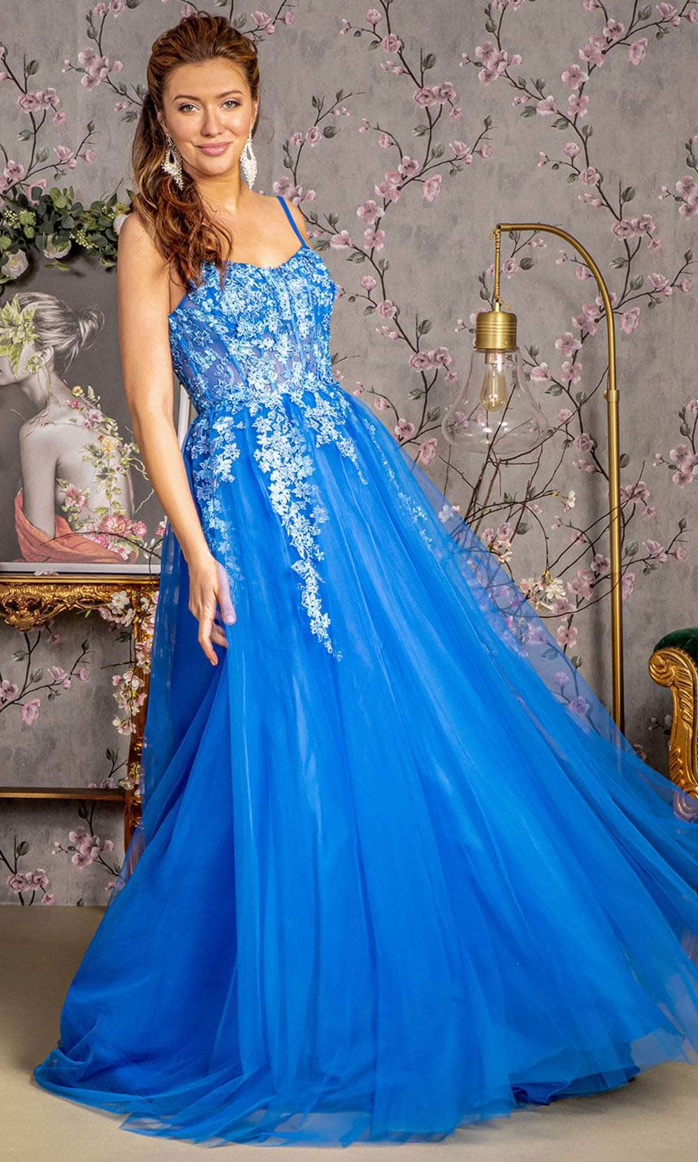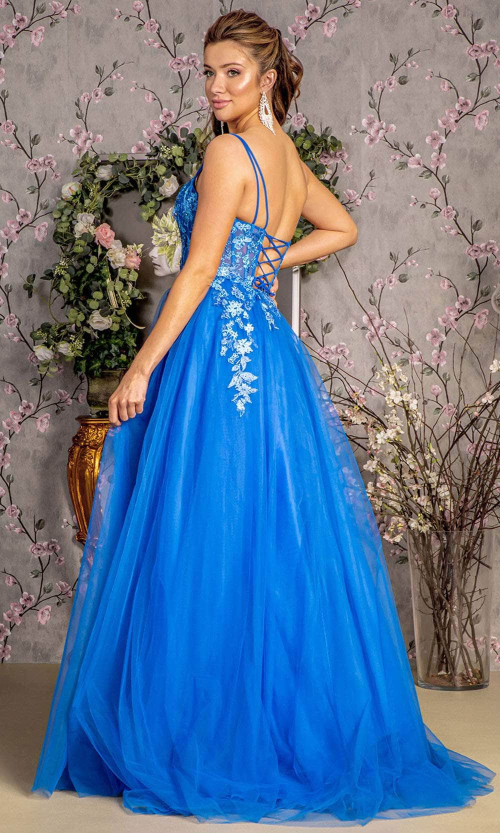 Embrace timeless beauty with GLS by Gloria GL3309, a sleeveless gown meticulously tailored from exquisite mesh fabric. The corset bodice, adorned with a scoop neckline and double spaghetti straps, exudes elegance. A secure fit is achieved with a lace-up tie at the back. The floor-length A-line silhouette gracefully parades, concluding with a train finish. This gown seamlessly marries modern allure with timeless sophistication, making GLS by Gloria GL3309 a radiant choice for any special occasion where grace meets enchantment. Model is wearing Royal Blue color.
