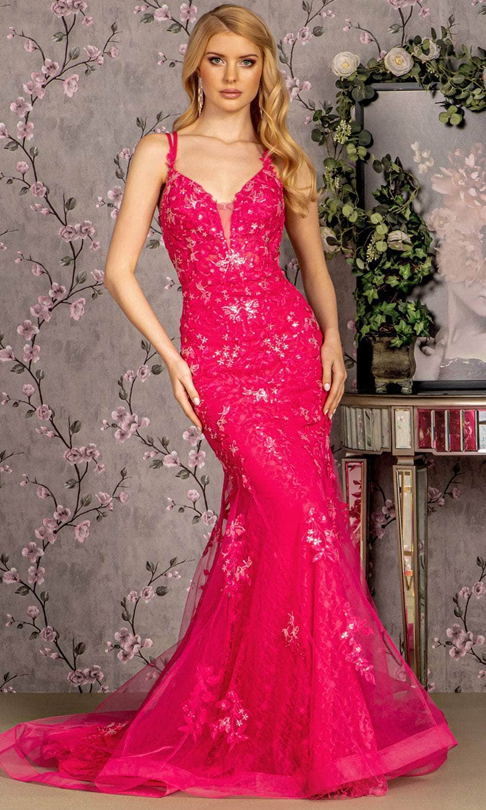 Step onto the red carpet with elegance in this stunning GLS by Gloria GL3333 evening gown. The dress features a captivating plunging sweetheart neckline on a fitted and sleeveless bodice, accentuated by double straps for additional support. The mid-open back is gracefully secured with lace for a refined finish. A sweep train cascades down the floor length of the mermaid-silhouette skirt, adding to the overall allure. The entire ensemble is meticulously designed with sequins and embroidery, enhancing your appeal on your special day. Embrace the captivating charm of a vamp in this alluring GLS by Gloria GL3333 creation. Models are wearing Fuchsia, and Ocean Blue colors.