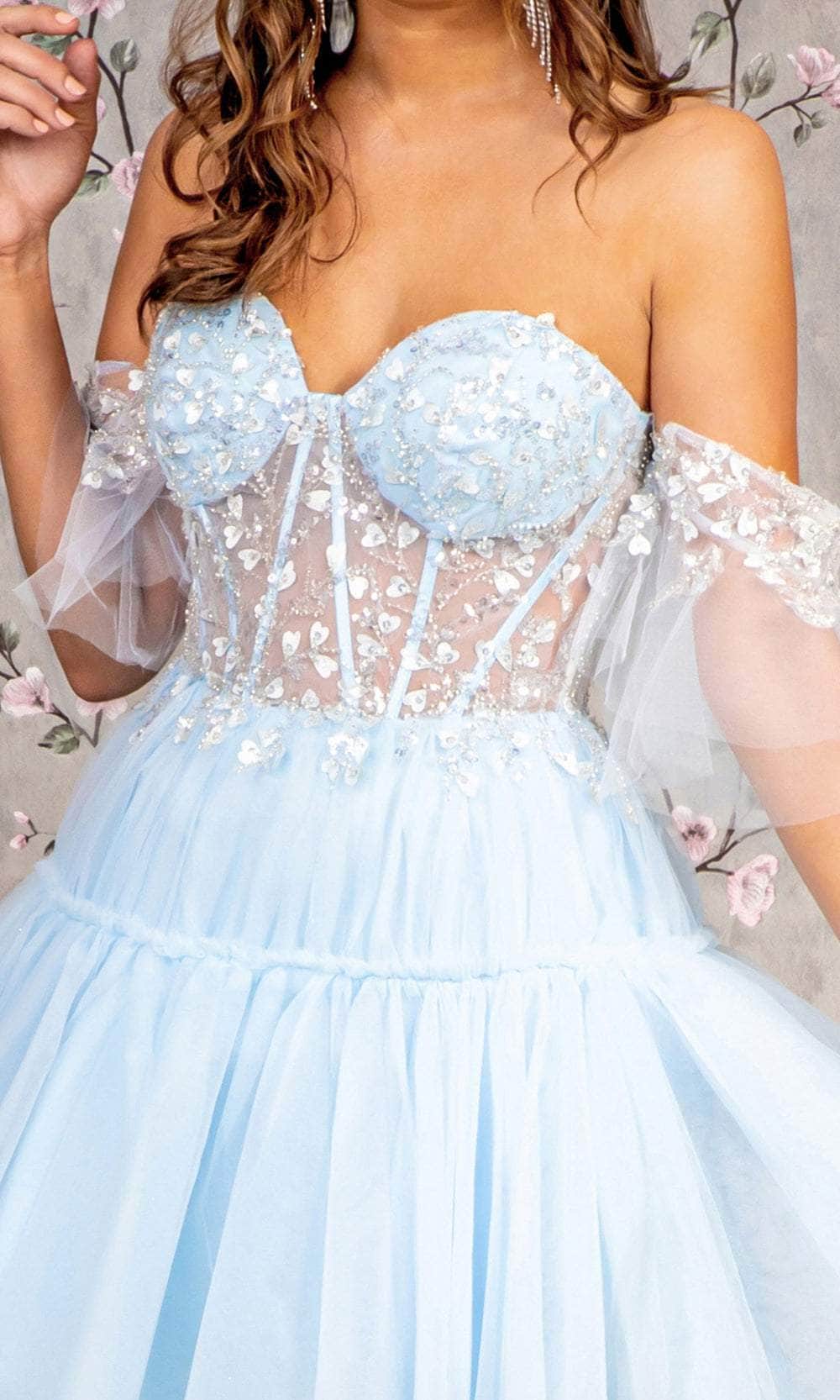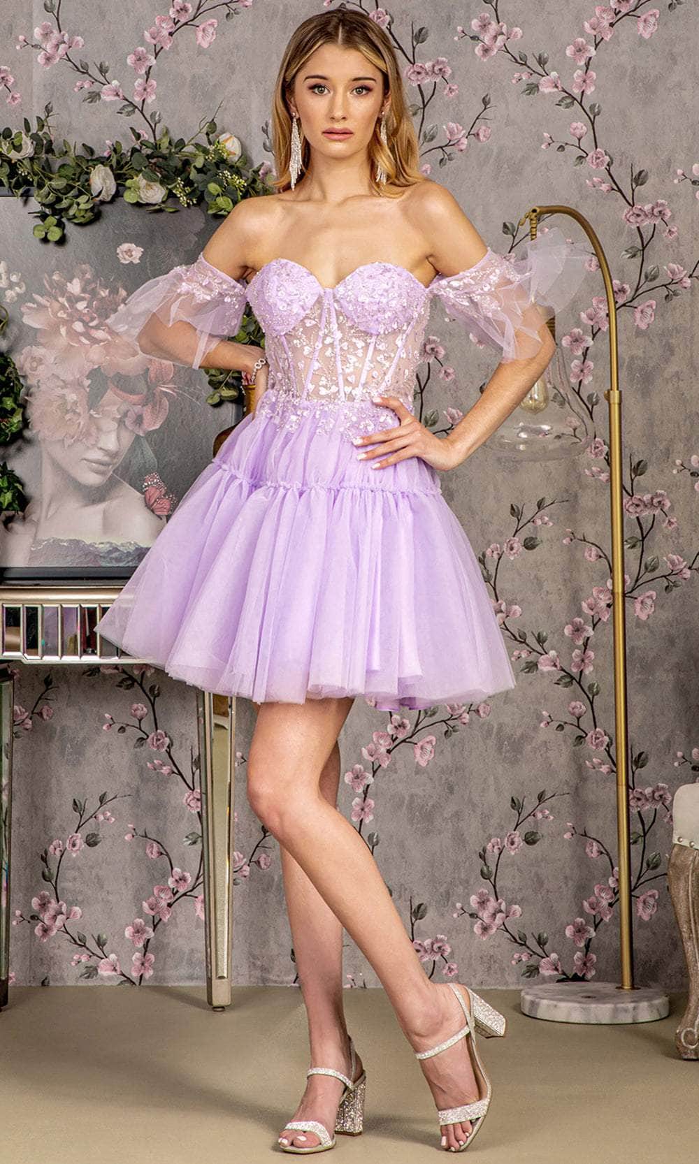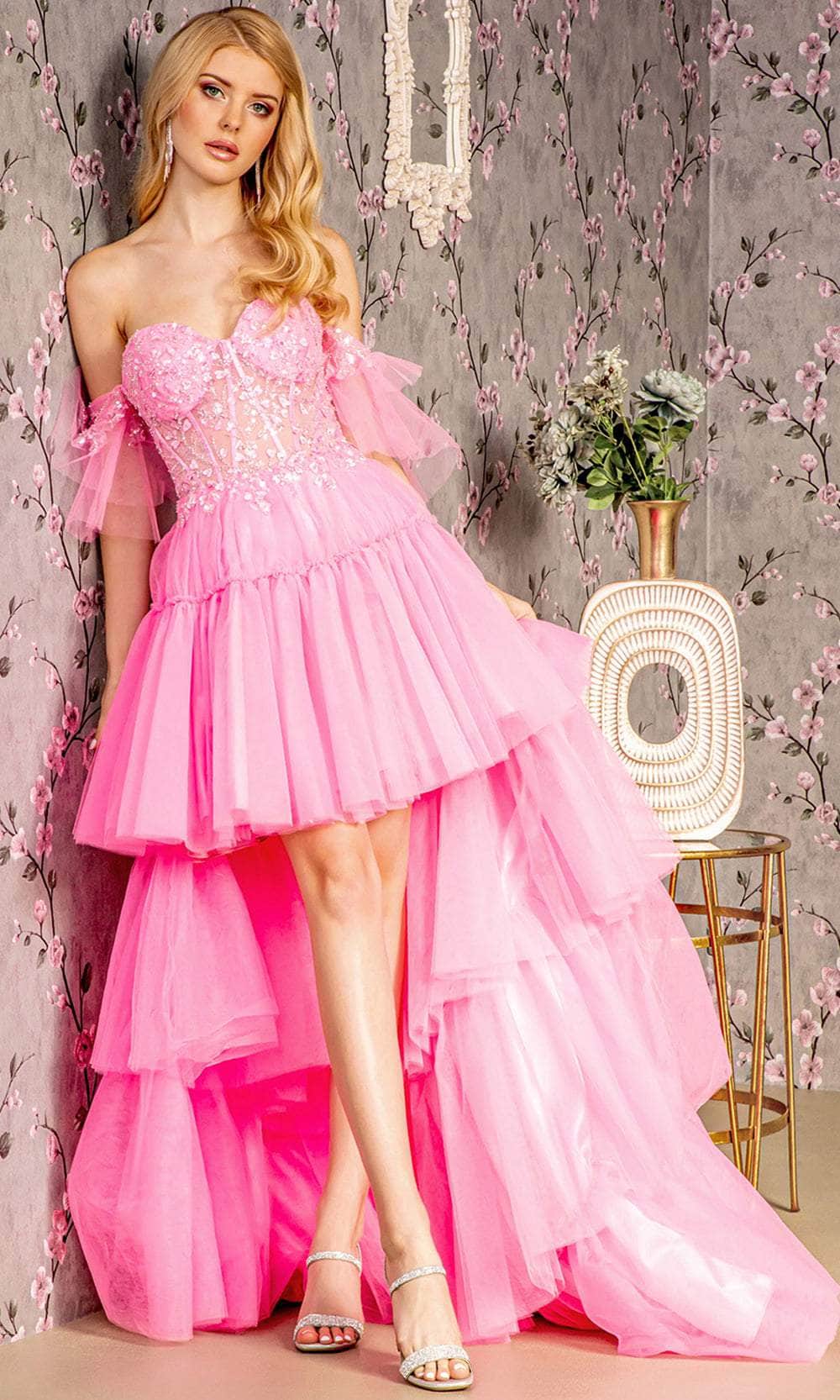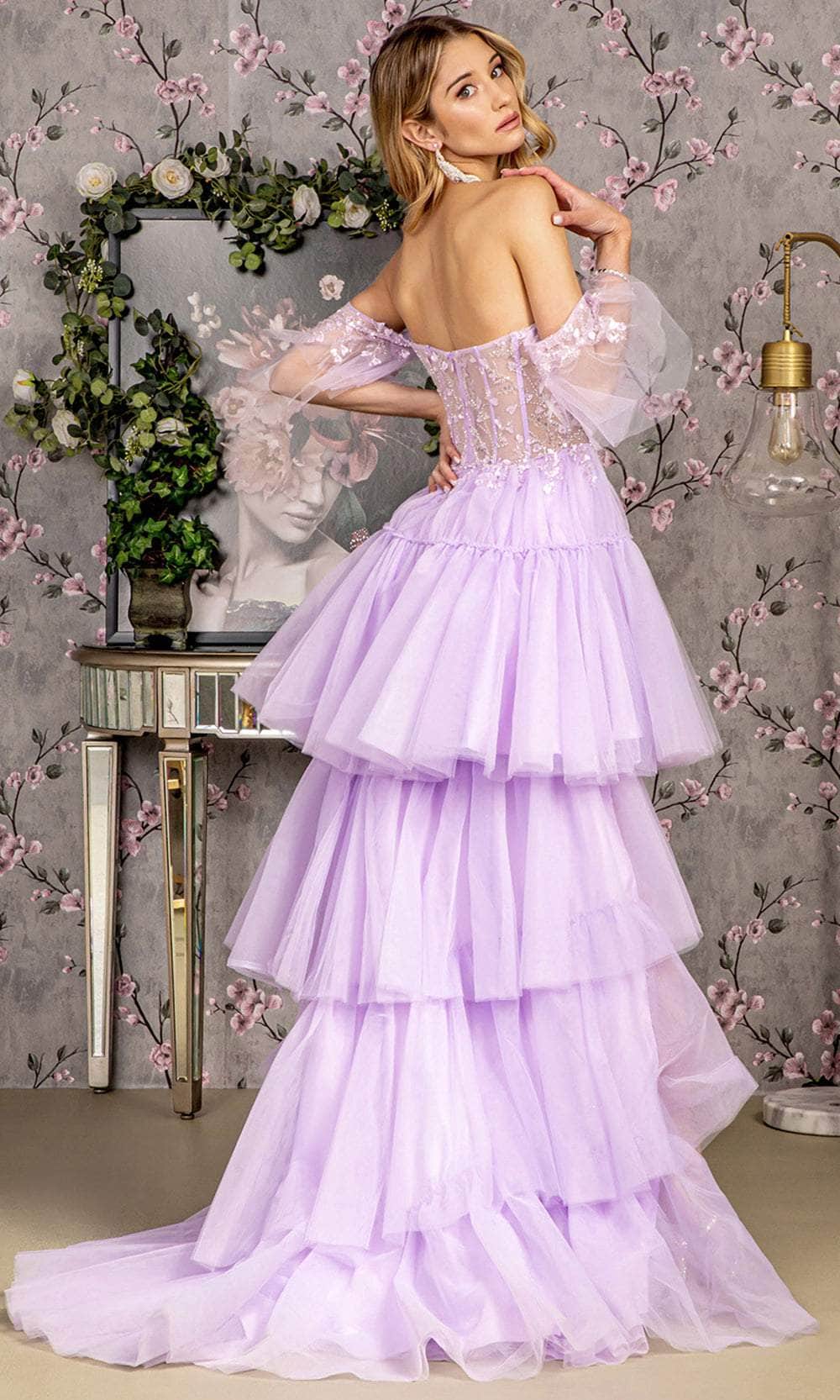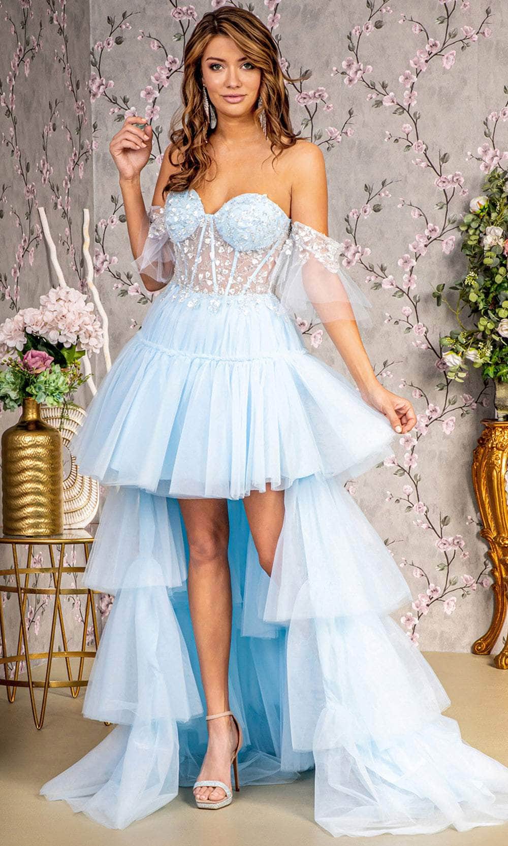 Render everyone speechless as you make your entrance in the GLS by Gloria GL3396 evening dress. This dress offers unparalleled versatility, transforming seamlessly from a cocktail dress to an evening gown with its detachable floor-length A-line skirt. The top showcases a charming off-shoulder neckline on a fitted illusion corset bodice. The mid-open back is elegantly secured by a zipper, ensuring a refined finish. Additionally, the tiered overskirt features a sweep train, adding a touch of glamour. With the exquisite GLS by Gloria GL3396, you are sure to dance the night away in style! Models are wearing Baby Blue, Hot Pink, and Lilac colors.