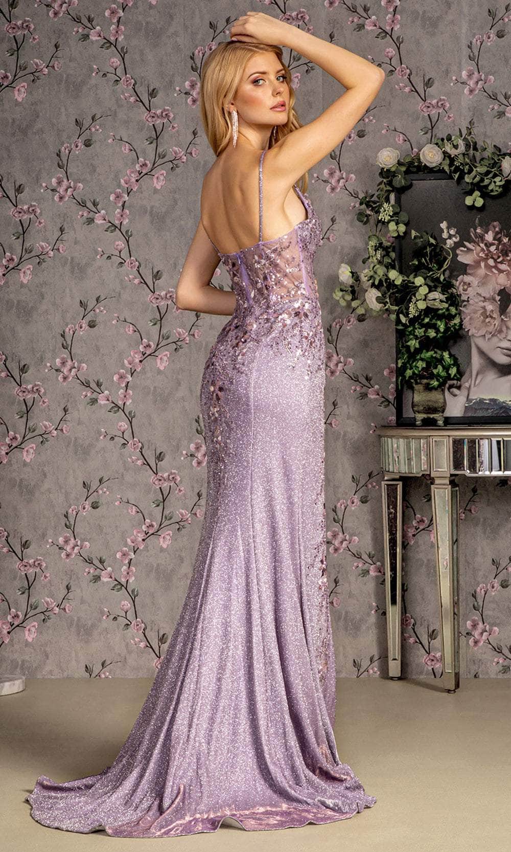 Transcend ordinary beauty with the cosmic allure of a GLS by Gloria GL3399 evening gown. This dress boasts a sophisticated V-neckline on a fitted and sleeveless illusion corset bodice. The top is adorned with spaghetti straps for added support, and a mid-open back, elegantly secured by a zipper for a refined finish. The sheath skirt gracefully displays a sweep train that cascades down to the floor length. The entire gown is intricately designed with a combination of glitters and sequin embellishments, allowing you to radiate allure from head to toe. Step confidently into the spotlight with the captivating charm of a GLS by Gloria GL3399 masterpiece. Model is wearing Lilac color.