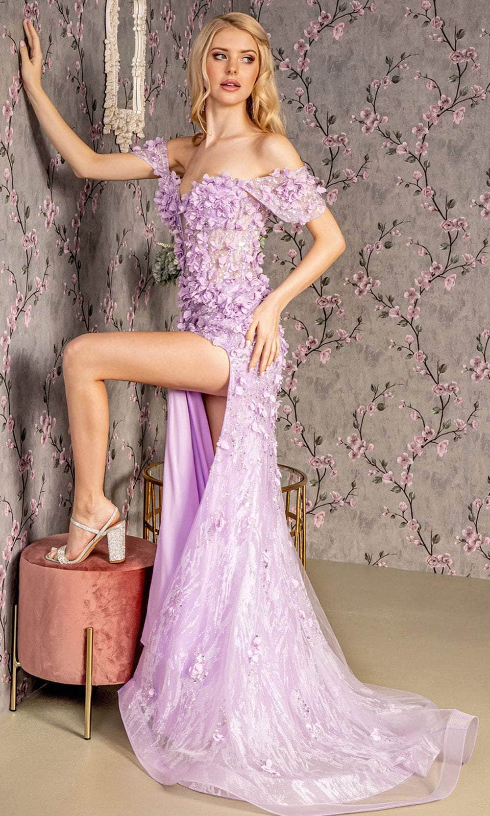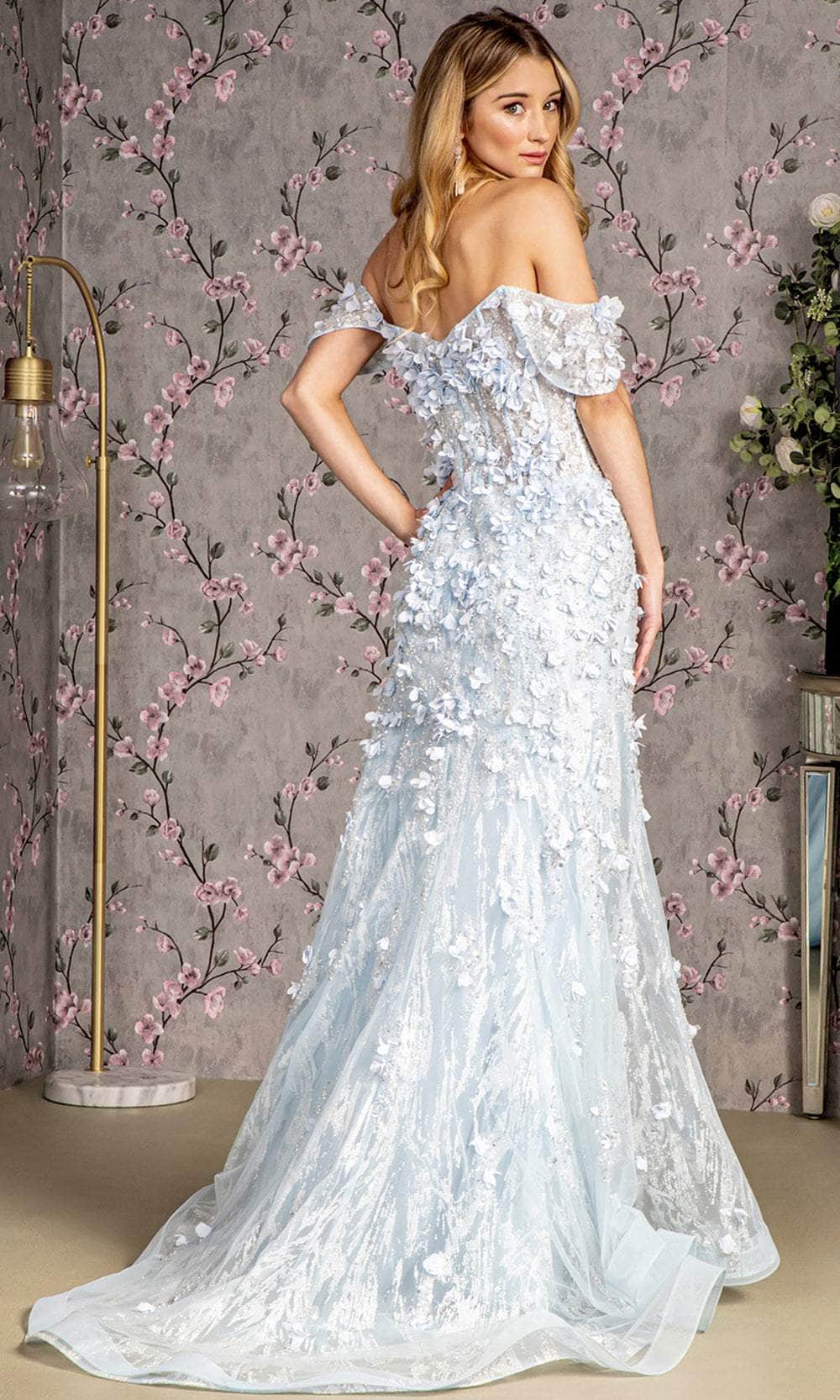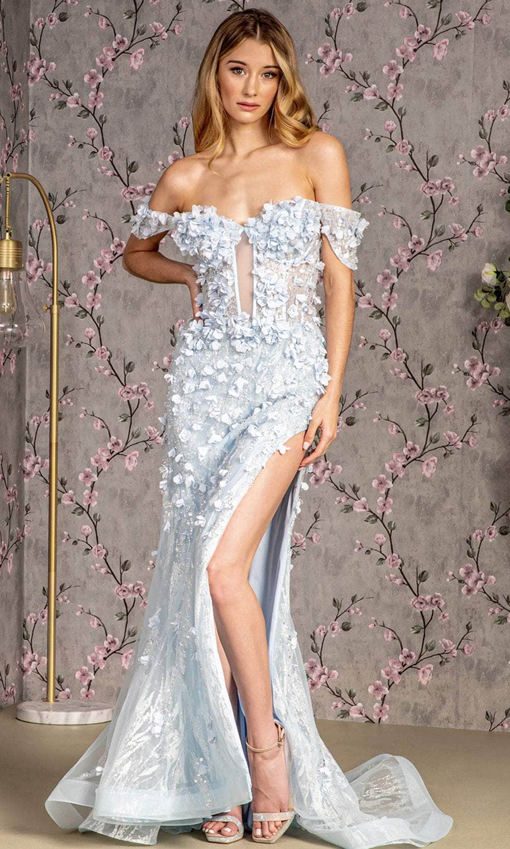 Embrace the evening with allure and elegance as you don this GLS by Gloria GL3409 evening gown. Featuring a charming off-shoulder neckline and a figure-flattering bodice, this dress exudes temptress beauty. The mid-open back is elegantly secured by a zipper for a refined finish, while the top boasts intricate boning details. The sheath skirt reveals an enticing high slit, and the entire masterpiece is adorned with a combination of floral appliques, sequins, and glitters, ensuring a captivating look from head to toe. A sweep train adds a touch of glamour to the overall creation. Leave everyone speechless in this GLS by Gloria GL3409 masterpiece. Models are wearing Baby Blue, Blush, and Lilac colors.