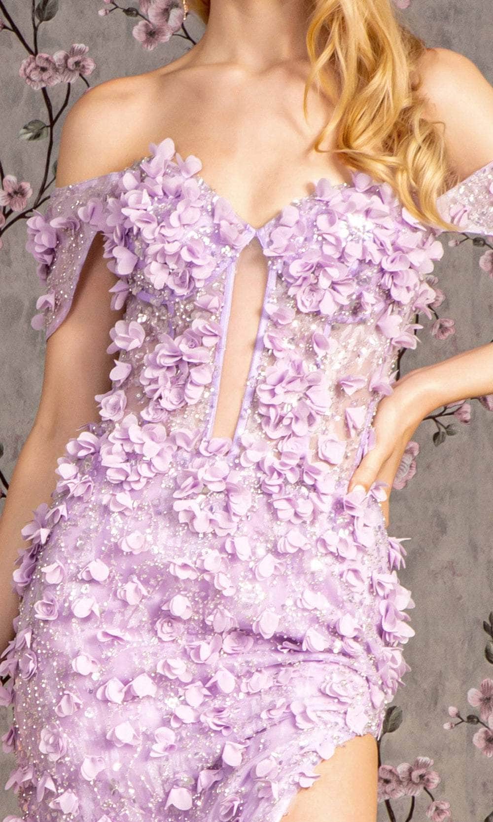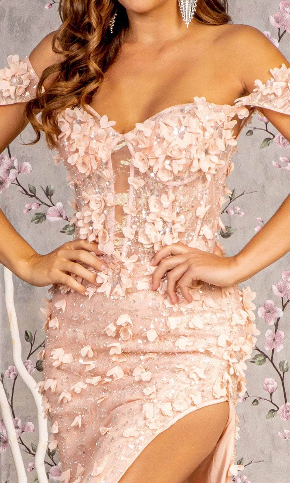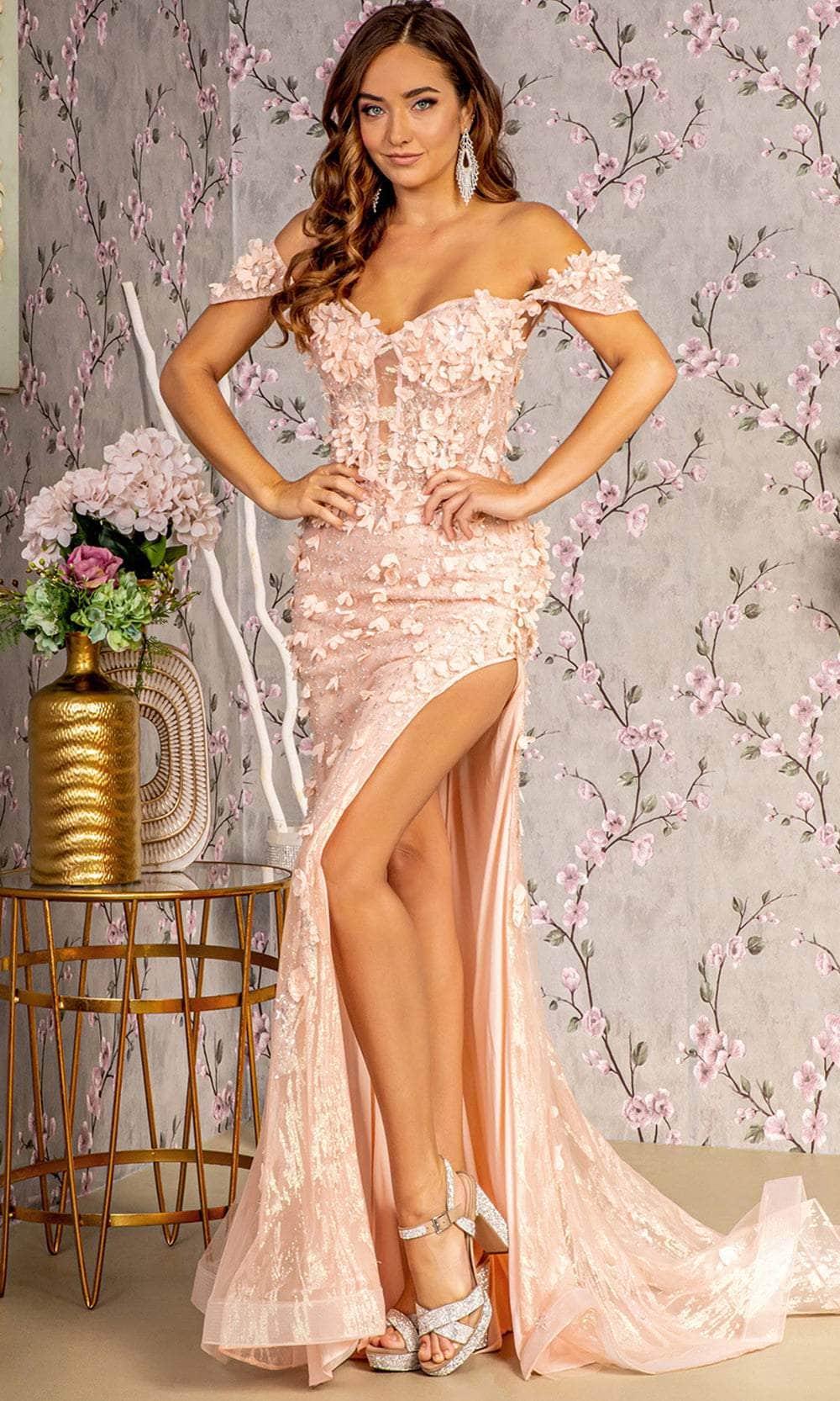 Embrace the evening with allure and elegance as you don this GLS by Gloria GL3409 evening gown. Featuring a charming off-shoulder neckline and a figure-flattering bodice, this dress exudes temptress beauty. The mid-open back is elegantly secured by a zipper for a refined finish, while the top boasts intricate boning details. The sheath skirt reveals an enticing high slit, and the entire masterpiece is adorned with a combination of floral appliques, sequins, and glitters, ensuring a captivating look from head to toe. A sweep train adds a touch of glamour to the overall creation. Leave everyone speechless in this GLS by Gloria GL3409 masterpiece. Models are wearing Baby Blue, Blush, and Lilac colors.