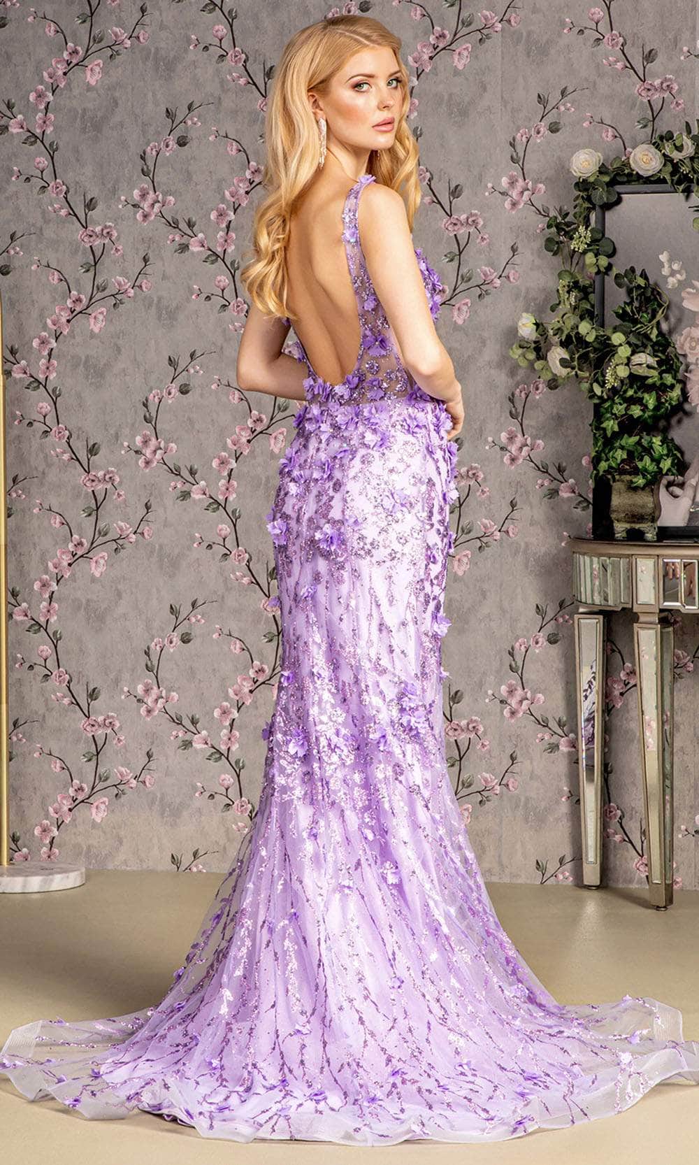 Make a statement in GLS by Gloria GL3410, a captivating gown that showcases a sleeveless sheer corset bodice adorned with a sweetheart neckline. The ensemble is beautifully embellished with floral appliques, sparkling glitters, jewels, and sequins, while embellished wide straps add a touch of opulence. The scoop-shaped open back, coupled with a central zipper closure, ensures a secure fit. The floor-length mermaid silhouette gracefully parades, concluding with a train finish. GLS by Gloria GL3410 seamlessly blends modern allure with timeless sophistication, making it a radiant choice for any special occasion. Model is wearing Lilac color.