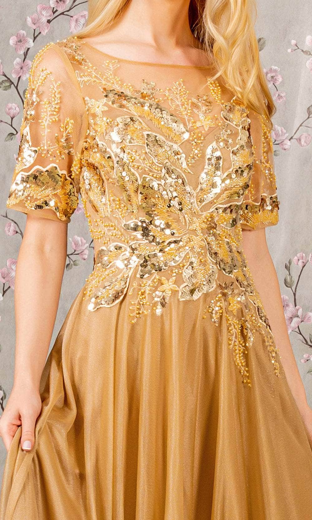 Exude absolute glamour and prepare to capture all attention as you step into the spotlight wearing this exquisite GLS by Gloria GL3444 evening dress. The gown features an alluring illusion bateau neckline, complemented by a full illusion back elegantly enclosed with a zipper for a polished finish. The top is adorned with captivating sequin and bead embellishments, enhanced by charming short sleeves. Additionally, the A-line skirt gracefully flows to the floor, enhancing your sophistication to the fullest. Be the epitome of class and style in this stunning GLS by Gloria GL3444. Models are wearing Gold, and Silver colors.