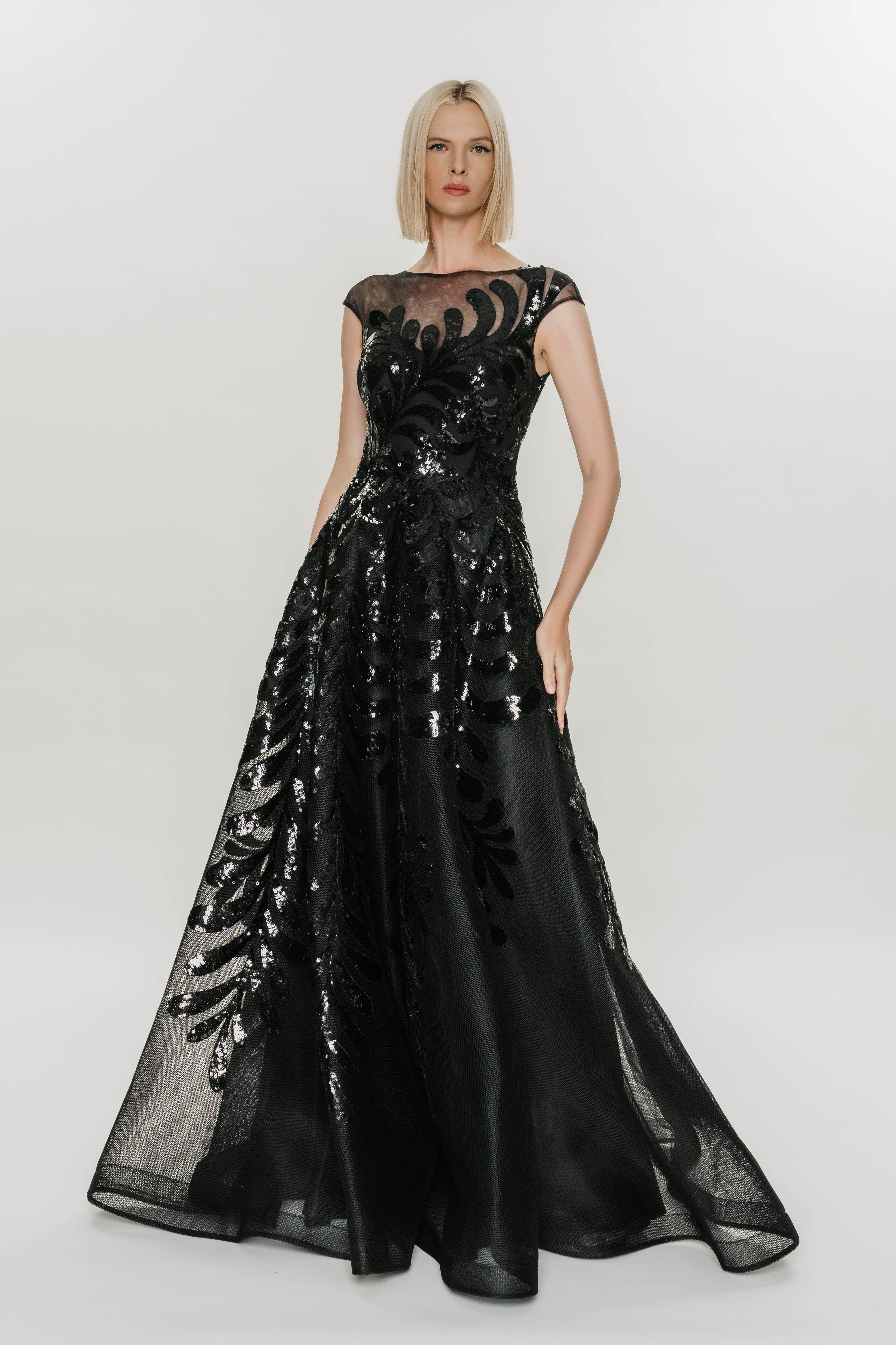 | Details: | Sheer Illusion Neckline, Cap Sleeves, Sequin Embroidered Details |