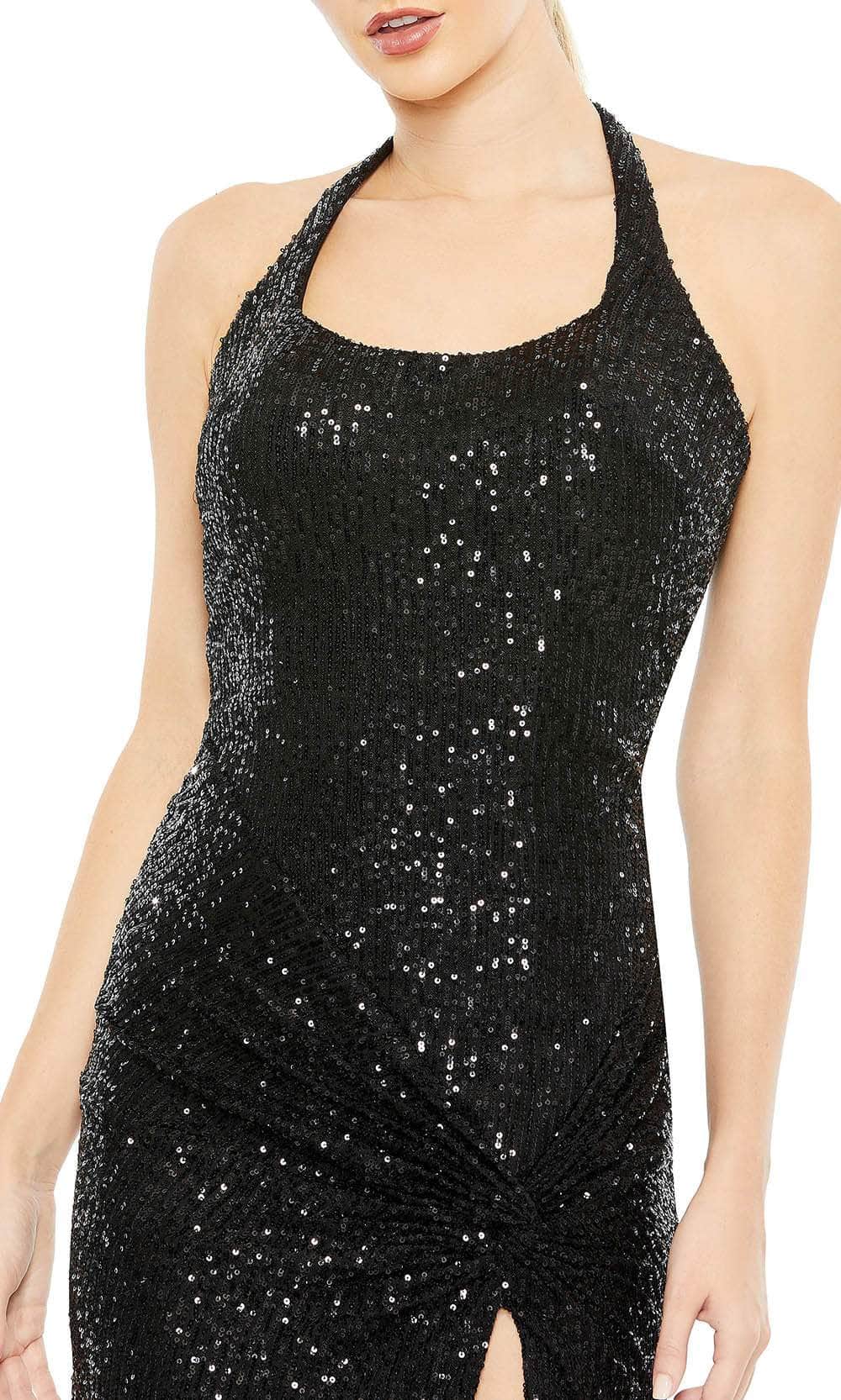 Details: Fully Sequined, Sleeveless, Open-Back, Back Zipper, High-Slit, Full-Length
