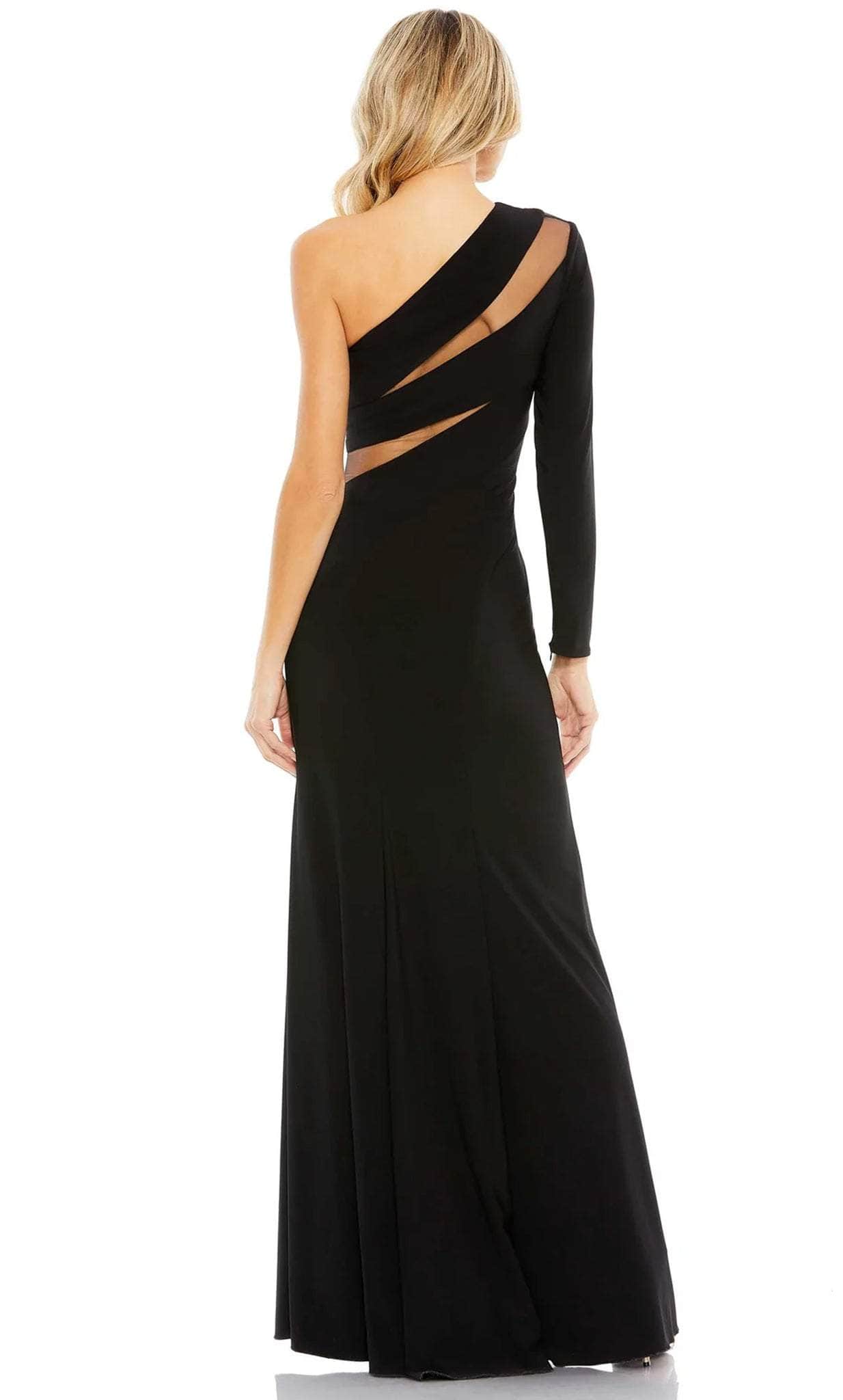 Turn yourself into a head-turning sensation by slipping into this utterly fetching Mac Duggal 11311. Shouts sophistication and class as you wear this Jersey-made dress in asymmetrical neckline and one long sleeve style. Has noticeable cuts allover covered in sheer fabric to show a hint of sultriness while fitting to the formal theme of the event. Flaunting a full-length column silhouette that flows smoothly and airy. Leave a trail of admirers as you glisten in beauty in this Mac Duggal 11311masterpiece. Model is wearing Black color.
