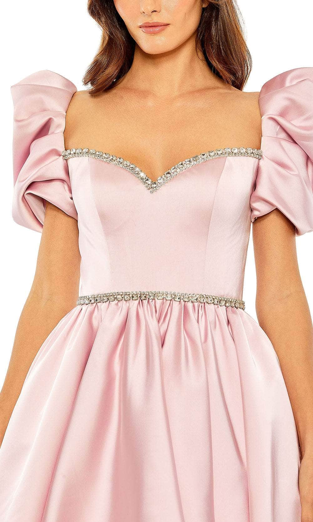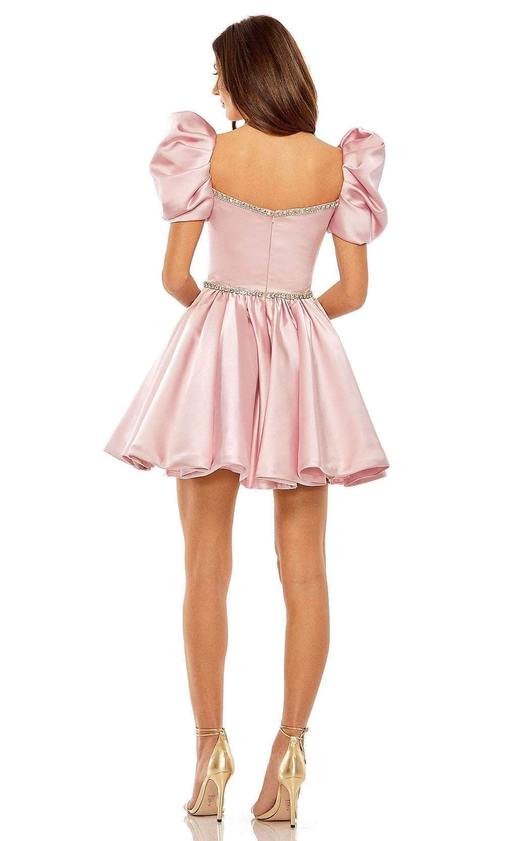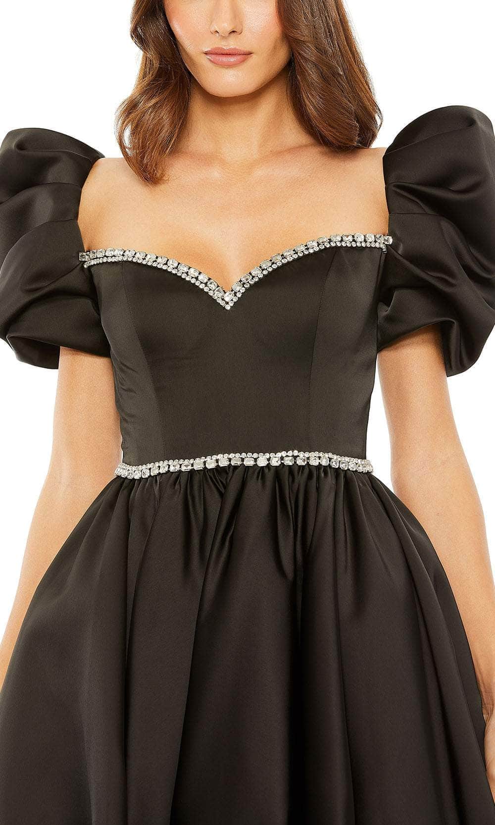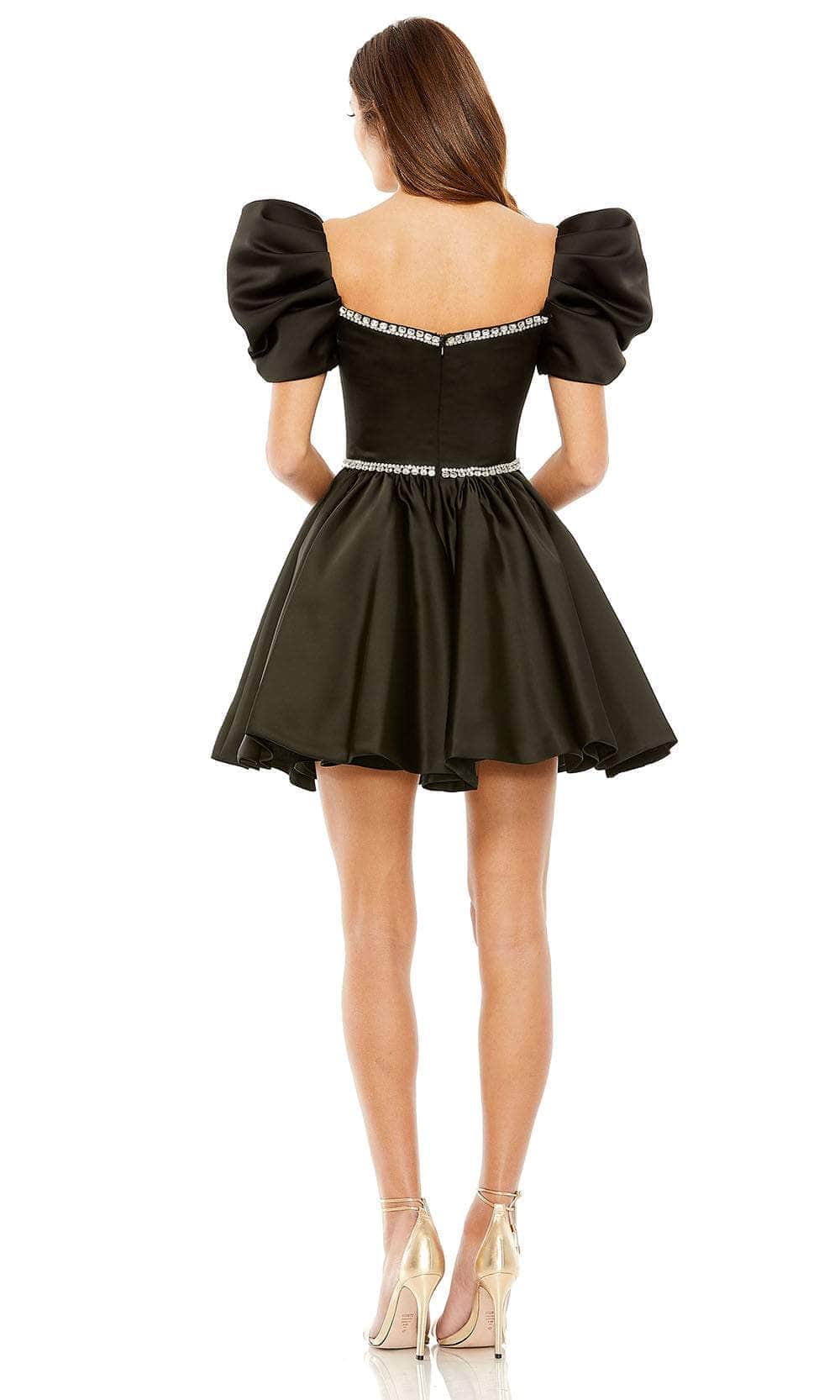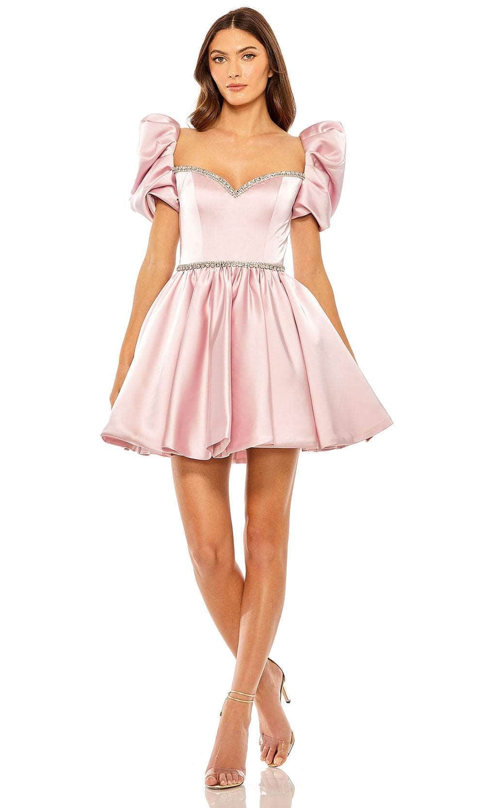 Prepare to leave a lasting impression wherever you go in the Ieena Duggal 20688 masterpiece. This satin ensemble has a sophisticated and stylish appearance with its short puff sleeves and beaded trim around the sweetheart neckline. It features a hidden zipper closure for comfort and security at the mid-open back. All body types will look great in the pleated mid-thigh skirt that flares out into an A-line style. Completed with a beaded thin belt that wraps the waist for a slimmer look. This Ieena Duggal 20688 dress is a must-have for any event. Models are wearing Black, and Blush colors.