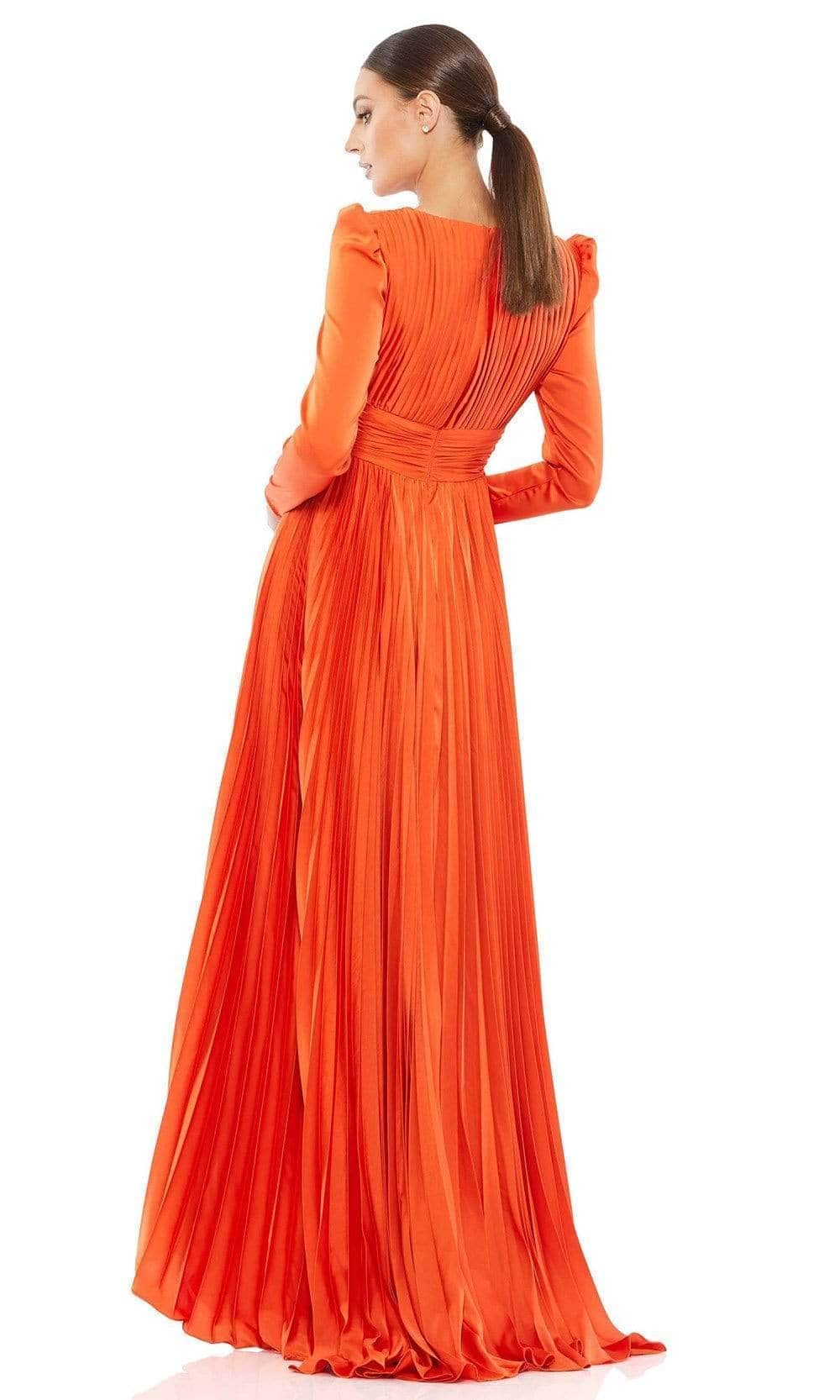 Rival the iridescence of the goddesses in this divine Ieena Duggal 26542 creation. Intricately textured with stunning pleats, this piece reveals a v-neckline with a surplice style. Nipped with a pleated waistband and accented with a full back, the A-line skirt traverses to the floor with a train. Glow on the red carpet in this Mac Duggal masterpiece.