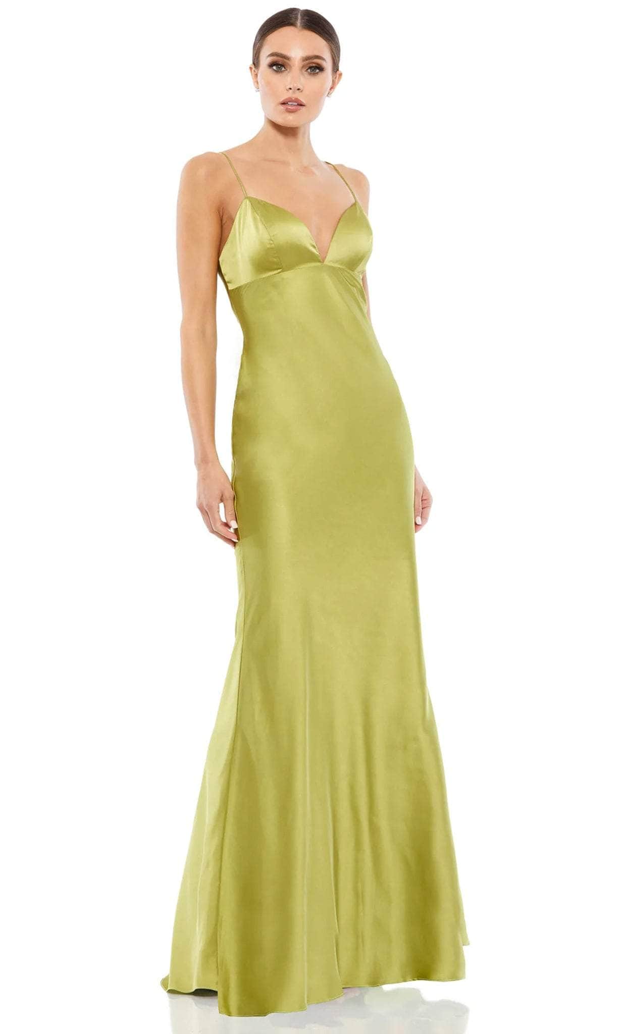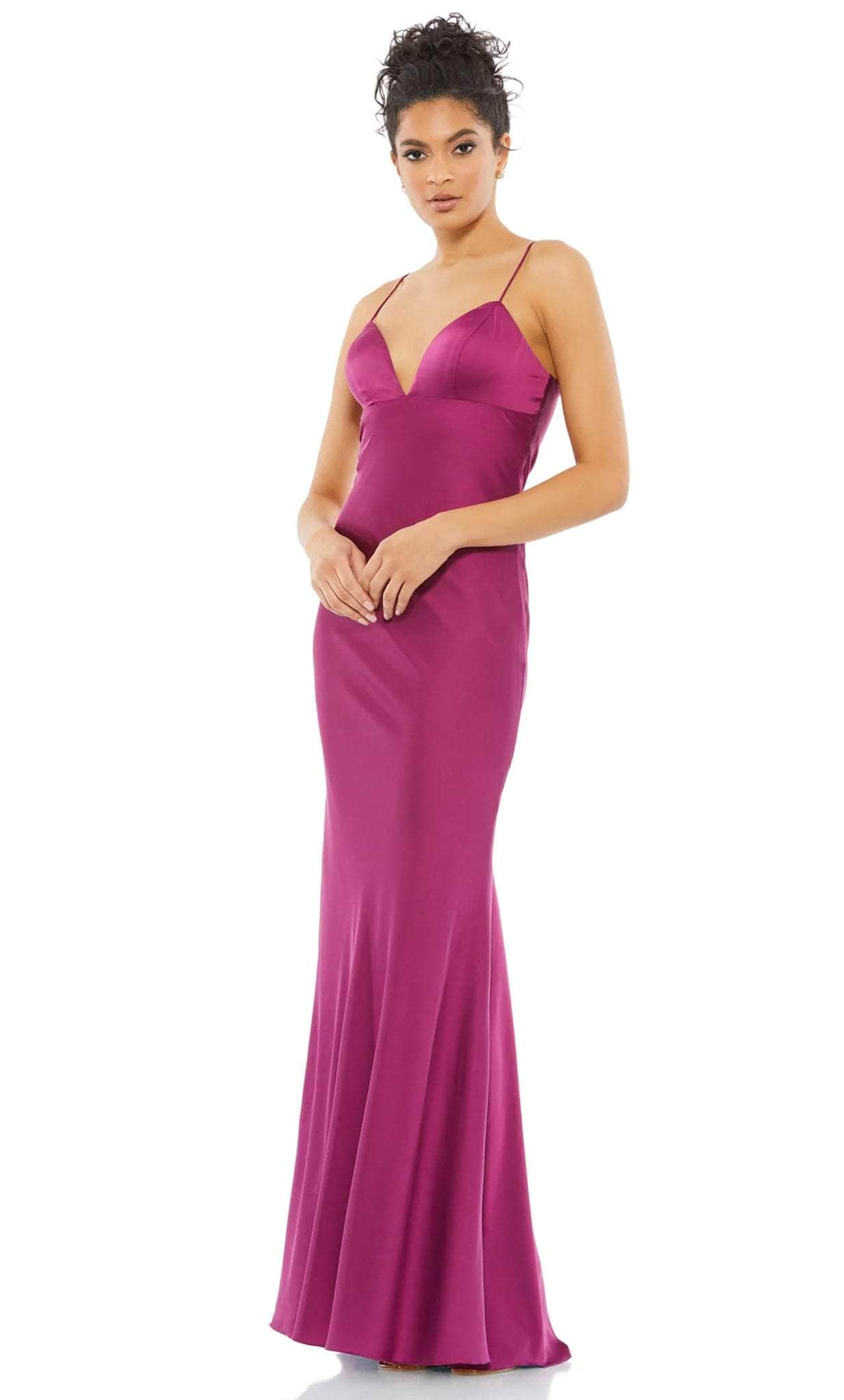 Have a blast in this fashionable creation from Ieena Duggal 26579. A simple design that exudes elegance, this sleeveless style is made from charmeuse fabric. It has a modest v-neckline held in place by spaghetti straps and a center zipper fastening in the mid-open back. Styled with an empire waist, the skirt smoothly glides into a full length sheath silhouette and ends in a slight sweep train. This Ieena Duggal 26579 gown is an instant refresh for your eveningwear repertoire. Models are wearing the Chartreuse and Mulberry colors.