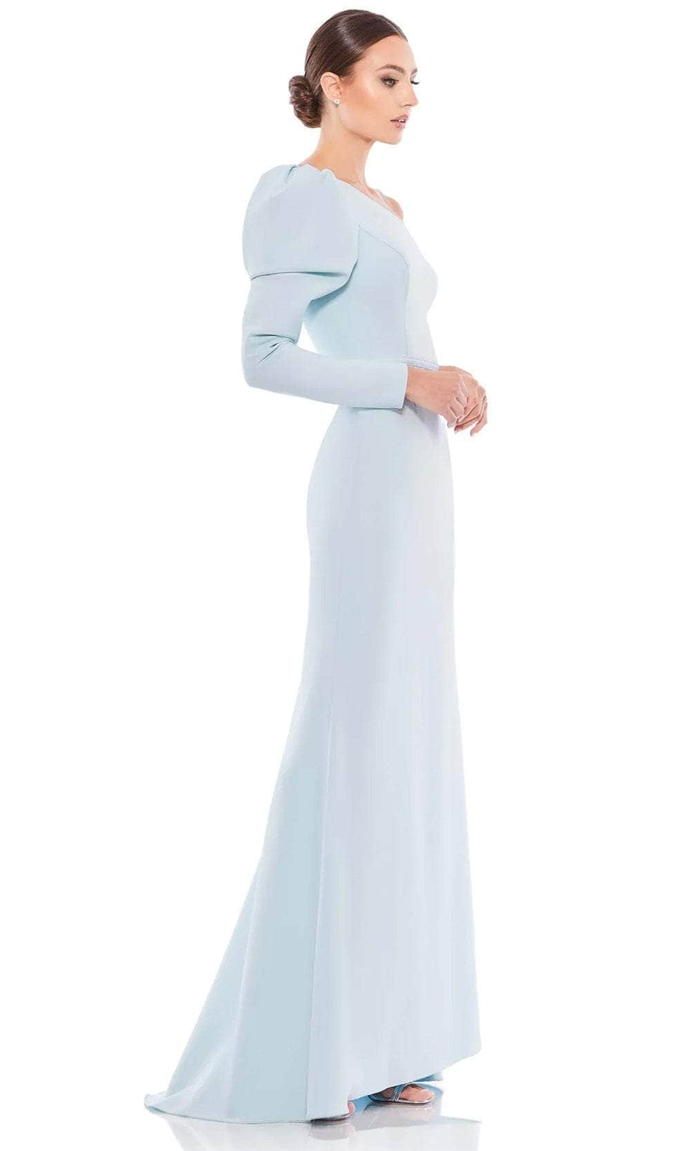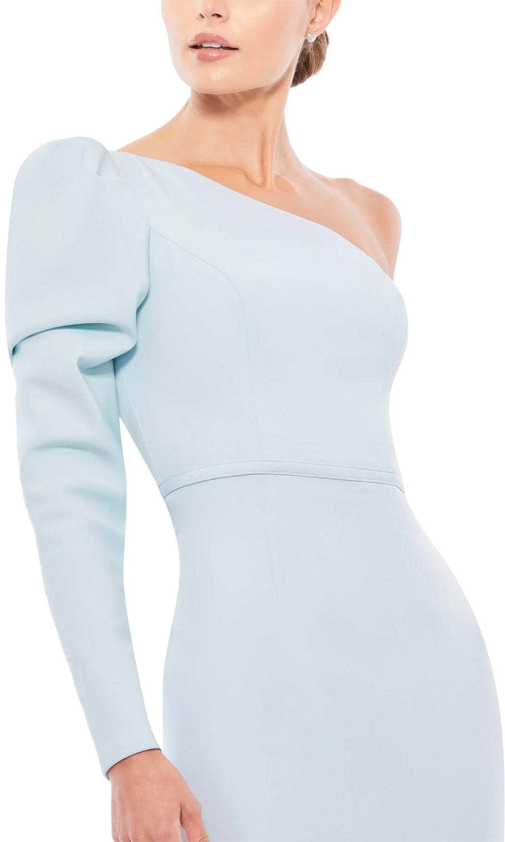 Have them astounded by the class of this Ieena Duggal 70149 creation. Tailored to perfection, this piece charms with a puff accented long sleeve and a one shoulder neckline. Nipped at the waist, this beauty skims and flows into a trumpet silhouette with a brush of train. Experience pure elegance in this Mac Duggal masterpiece.