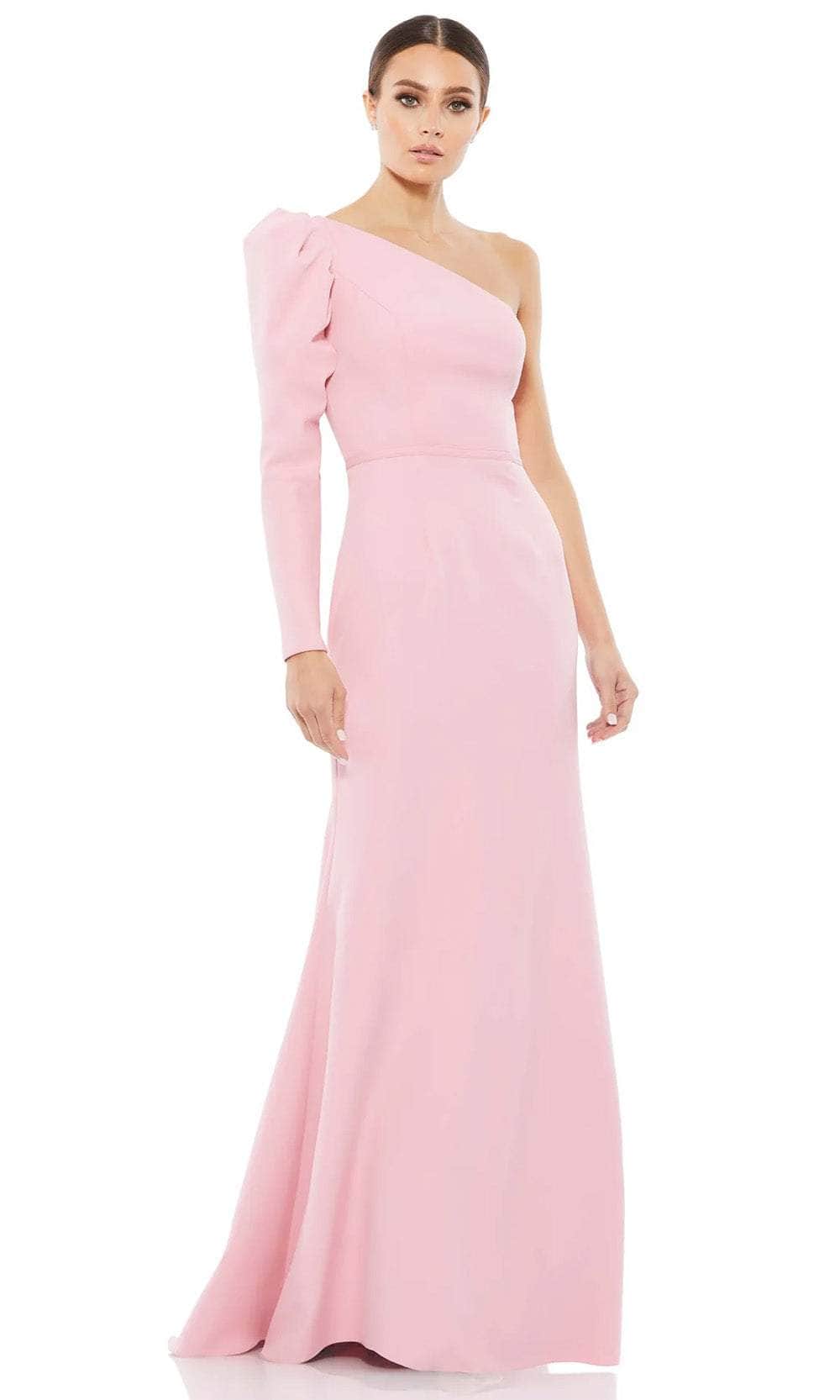 Have them astounded by the class of this Ieena Duggal 70149 creation. Tailored to perfection, this piece charms with a puff accented long sleeve and a one shoulder neckline. Nipped at the waist, this beauty skims and flows into a trumpet silhouette with a brush of train. Experience pure elegance in this Mac Duggal masterpiece.