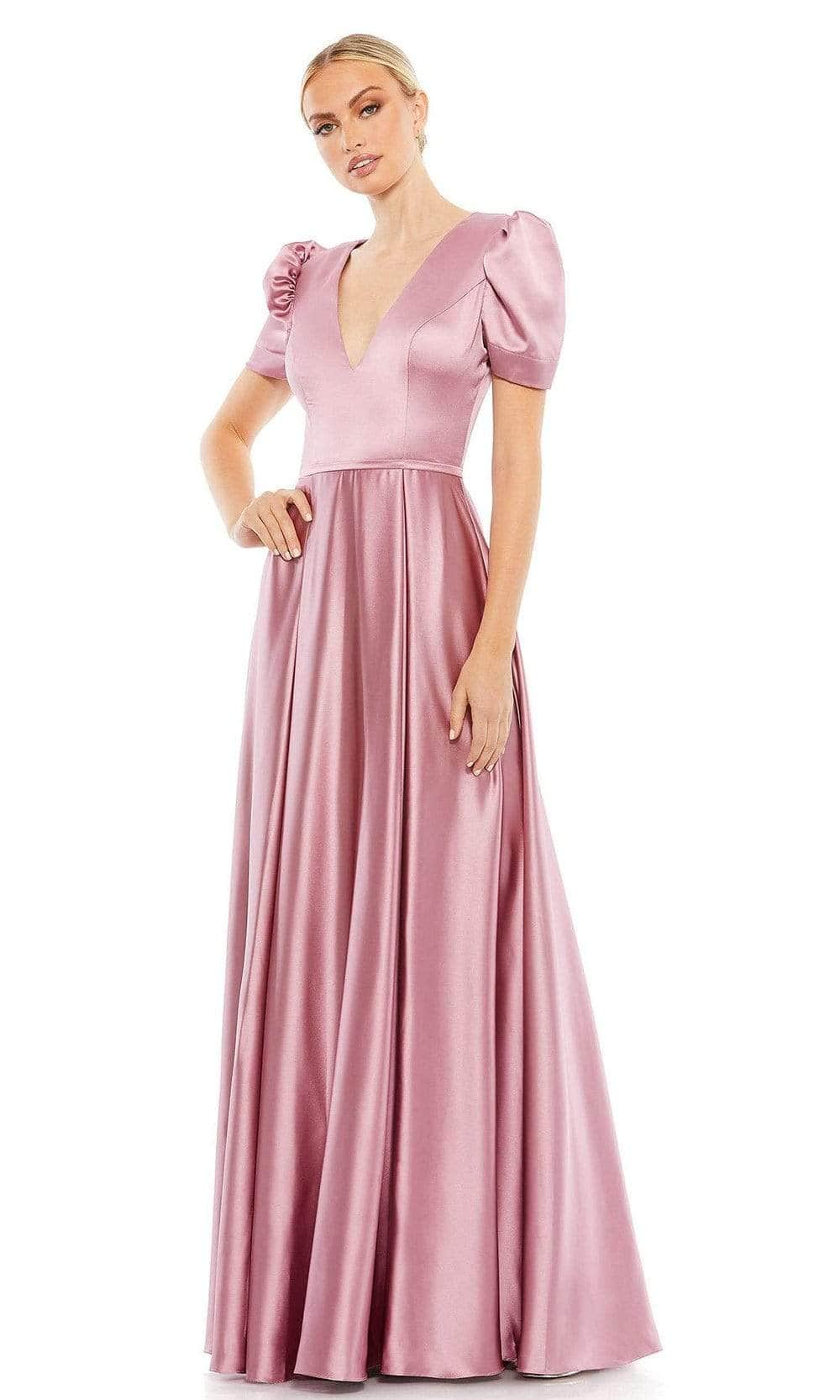 Walk into the ballroom with pure elegance in this Ieena Duggal 26606 creation. Tailored into a figure-flattering silhouette, this gown charms with a v-neckline with puff accented sleeves. The sleek skirt exquisitely flows into an A-line silhouette with a train. Don a style that steals the show in this Ieena Duggal masterpiece.
