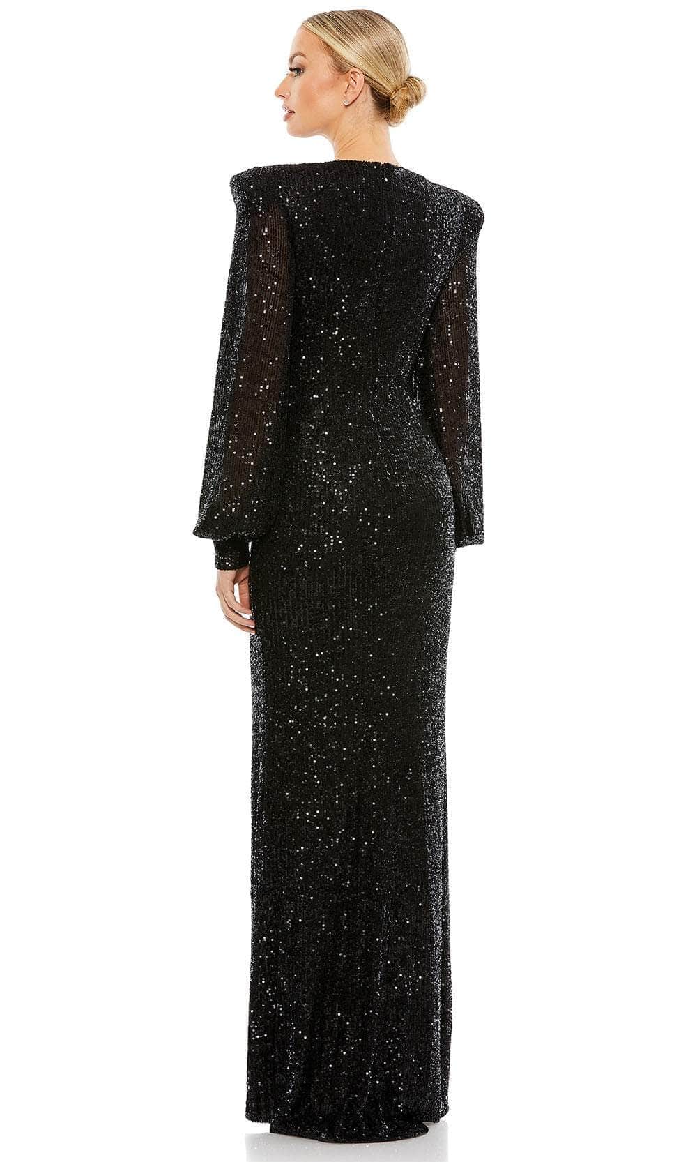 Walk in a defined sophistication and beauty wearing this Mac Duggal 26722 evening dress. This dress showcases an alluring plunging V-neckline in a fitted bodice. It also features long puff sleeves, adding sophistication to the whole look. Additionally, this dress is designed entirely with sequins, making it look glamorous at any angles. It has a full back enclosed by a zipper for a neat finish. A sheath silhouette is also exhibited on its full-length skirt. Achieve the next level of elegance in this stunning Mac Duggal 26722 masterpiece! Models are wearing Nude Silver, Midnight, and Black colors.