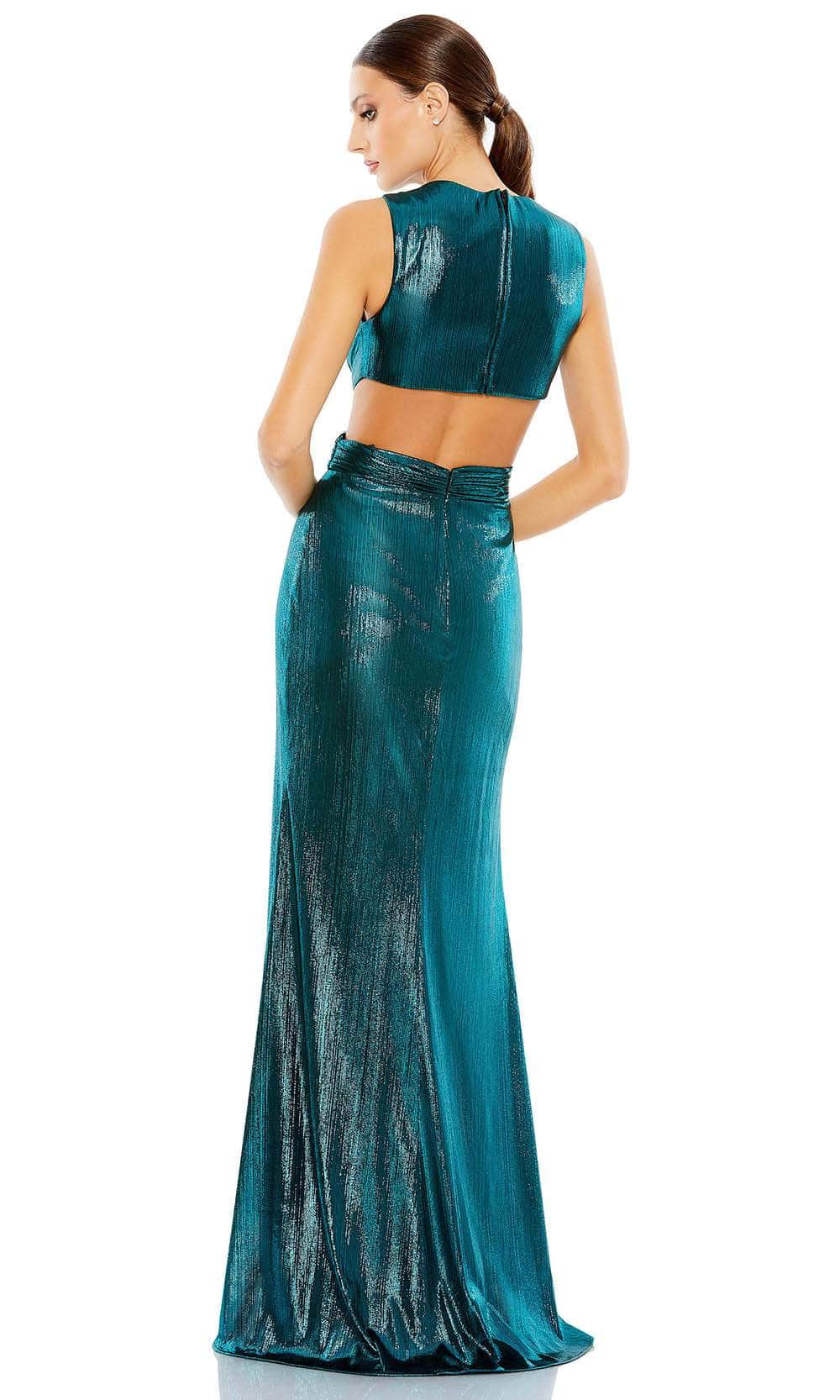 Look fantastic for your next formal event in Mac Duggal 26733 and be the center of attention! The cutaway sides of this garment are part of what make it so beautiful with pleated aspects that adds a textural interest while also emphasizing your curves. The slit in the skirt is practical lets you move freely while adding a stylish feature. The mid-open back is an unanticipated touch of appeal, secured by the zipper closing in the back makes for a snug but comfortable wear and finished off by the slight train that moves with you to give drama and sophistication. Look sophisticated and classy in Mac Duggal! Model is wearing Teal color.