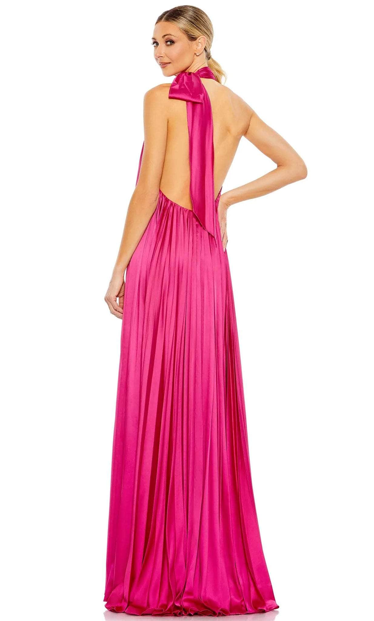 In this stunning Ieena Duggal 26926, you can attend any party with the panache of a diva. A sleeveless gown tailored in satin fabric, this winning piece has a halter neckline detailed with a soft tie that brings an elegant touch. The open back is secured with a center zipper closure while the skirt parades in an A-line silhouette cascading into the floor. Show off your fashionable side in this Ieena Duggal 26926 masterpiece. Models are wearing Pink and Spring Green colors.