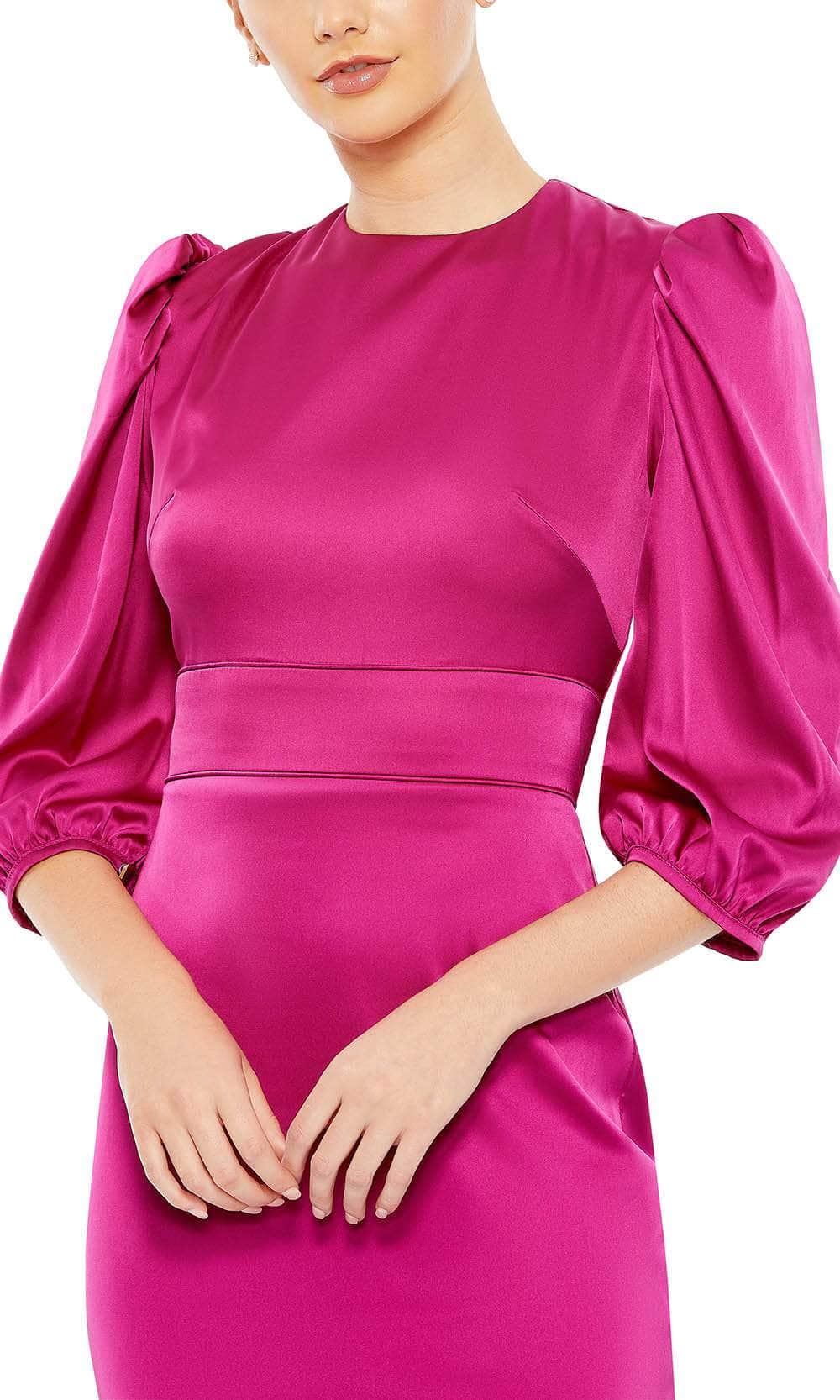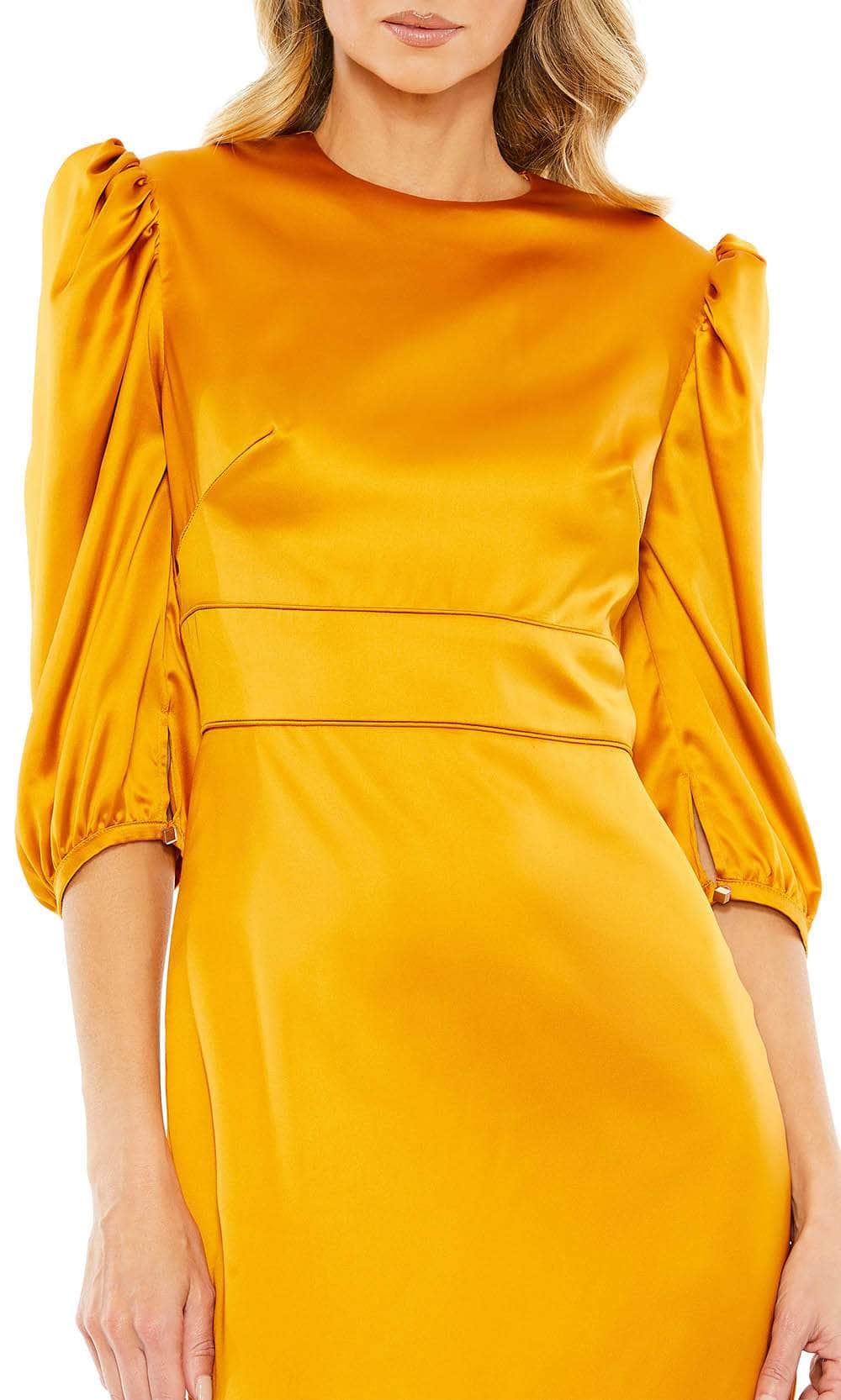 Get ready for everyone to stop and stare when you show up in this Ieena for Mac Duggal 26927 formal dress. Showcasing a modest fashionable style with quarter length puffed sleeve which will make you look taller, paired with high-neck and high-back styles. Secured with a concealed zipper at the back to give you a comfortable fit and a slit at the skirt for ease of movement. The Charmeuse fabric that is used in this piece is sure to give you a glam finish. Bask in the captivating radiance of the spotlight when you don this exquisite Ieena for Mac Duggal design. Models are wearing Chartreuse, Fuchsia, and Marigold colors.