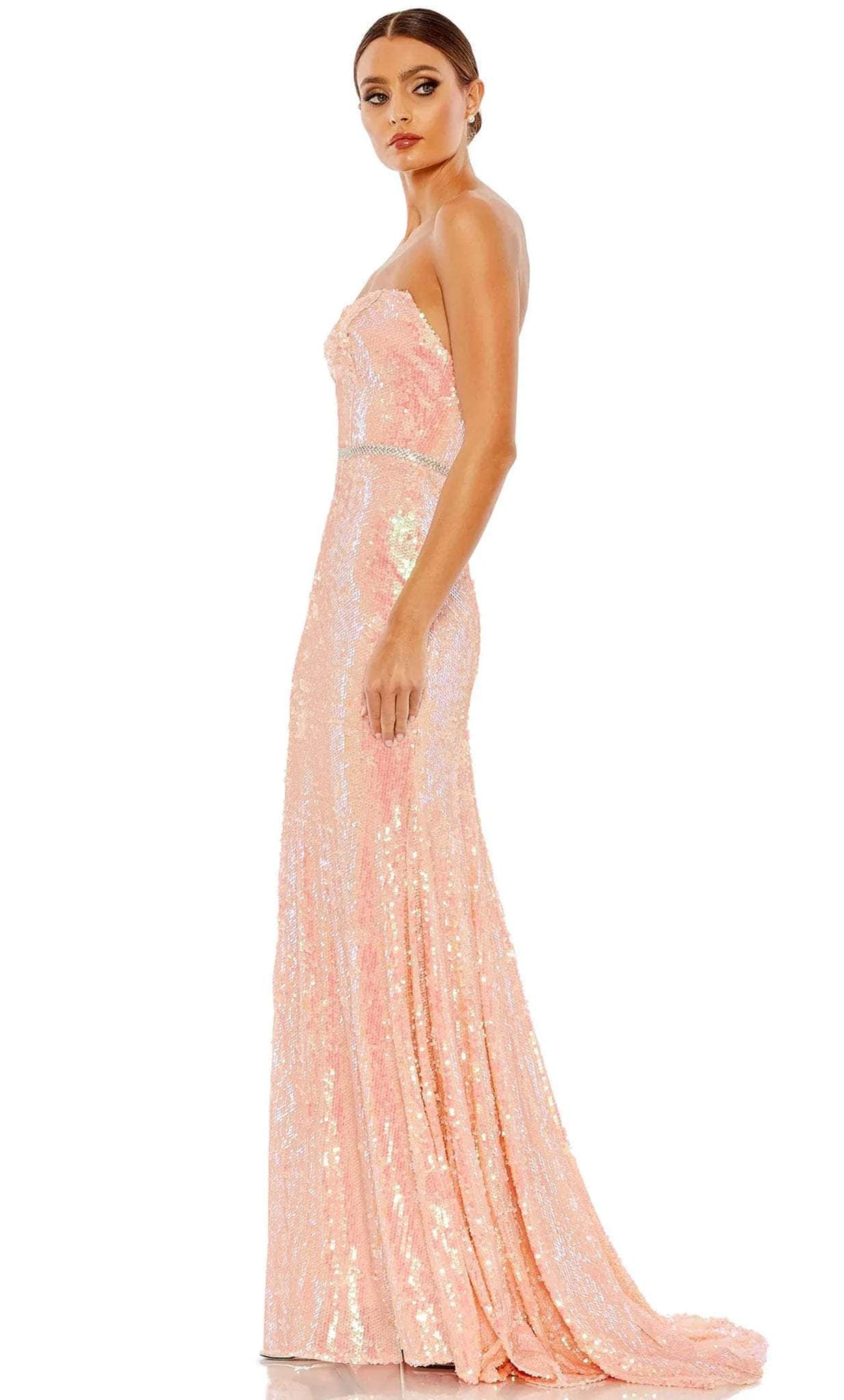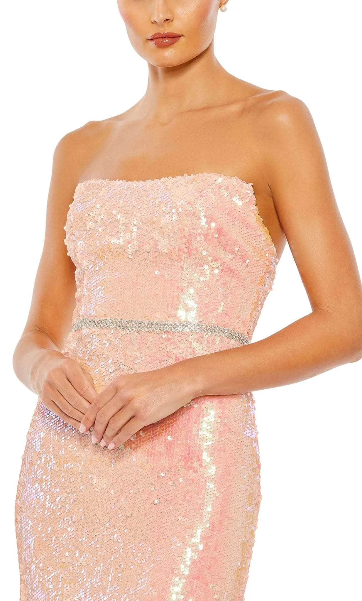 Shine through the night in this mesmerizing Mac Duggal 26980 design. With its gleaming sequined embellishment throughout, this shimmering dress would not let you dull your brightness. This gorgeous piece showcases a modified straight-across neckline. Styled with a strapless fitted bodice that flourishes a stunning shirred, full-length column skirt with a lavish trail of sweep train. This dress provides a perfect fit for your perfect figure. The stares of everyone will surely be directed to you exclusively when you wear this Mac Duggal 26980 masterpiece. Model is wearing Coral color.