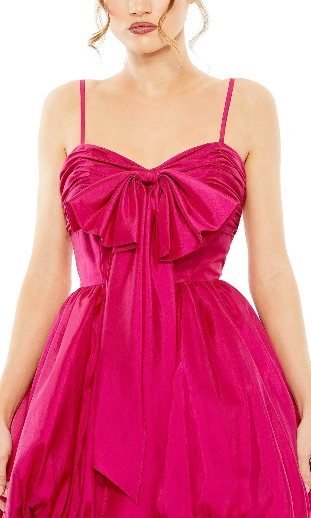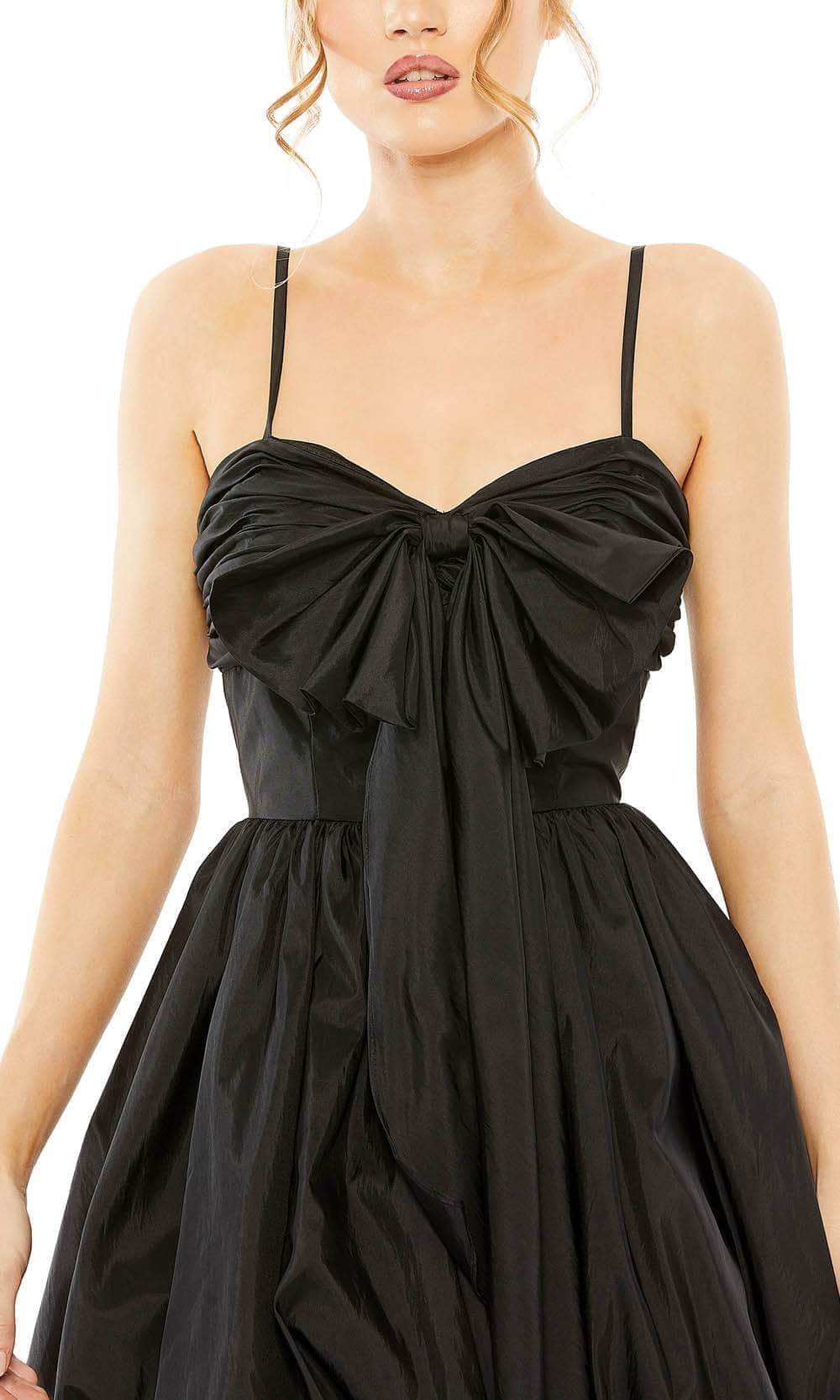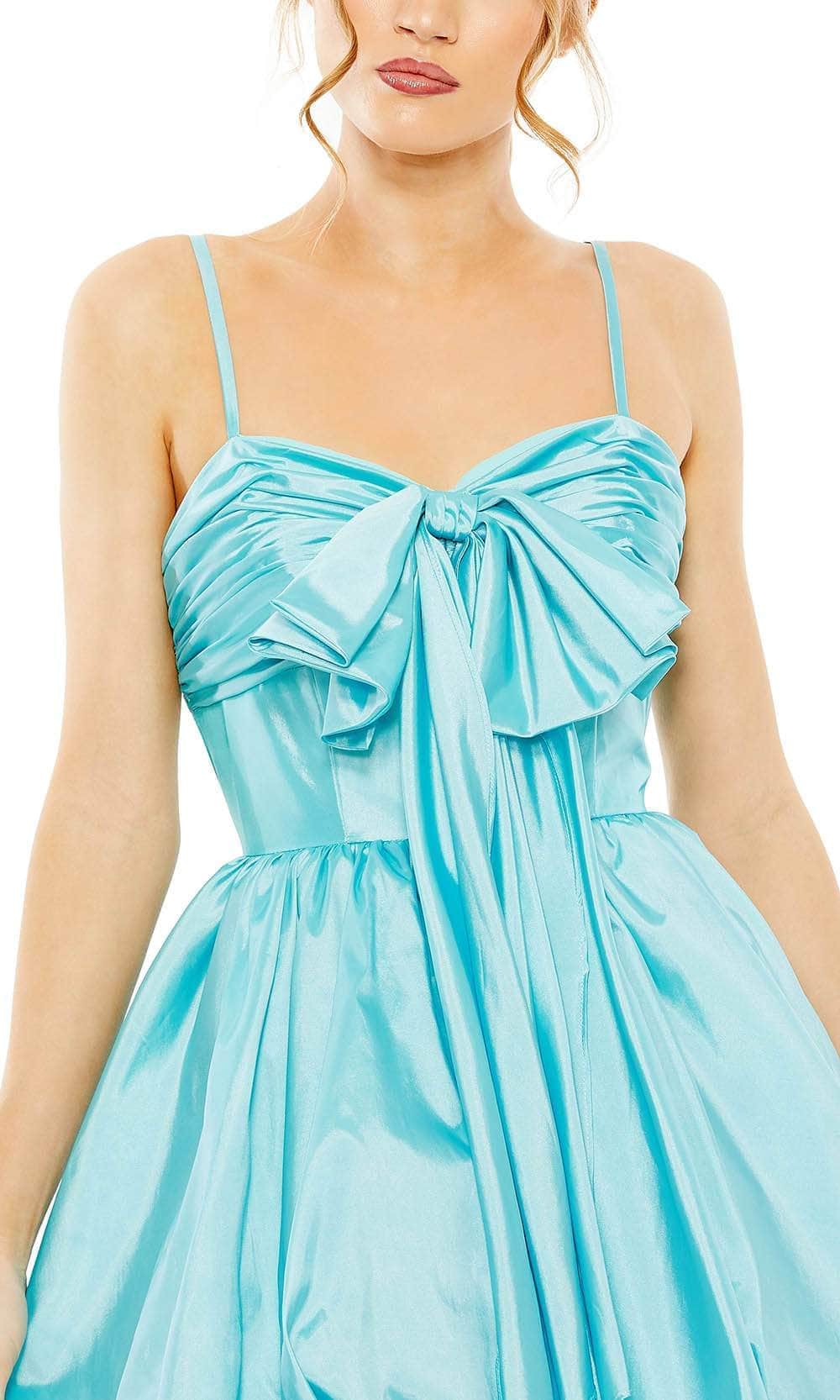 | Details: | Spaghetti Straps, Bow Accent, Midrise Back, Zipper Closure, Balloon Skirt, Short Hem |